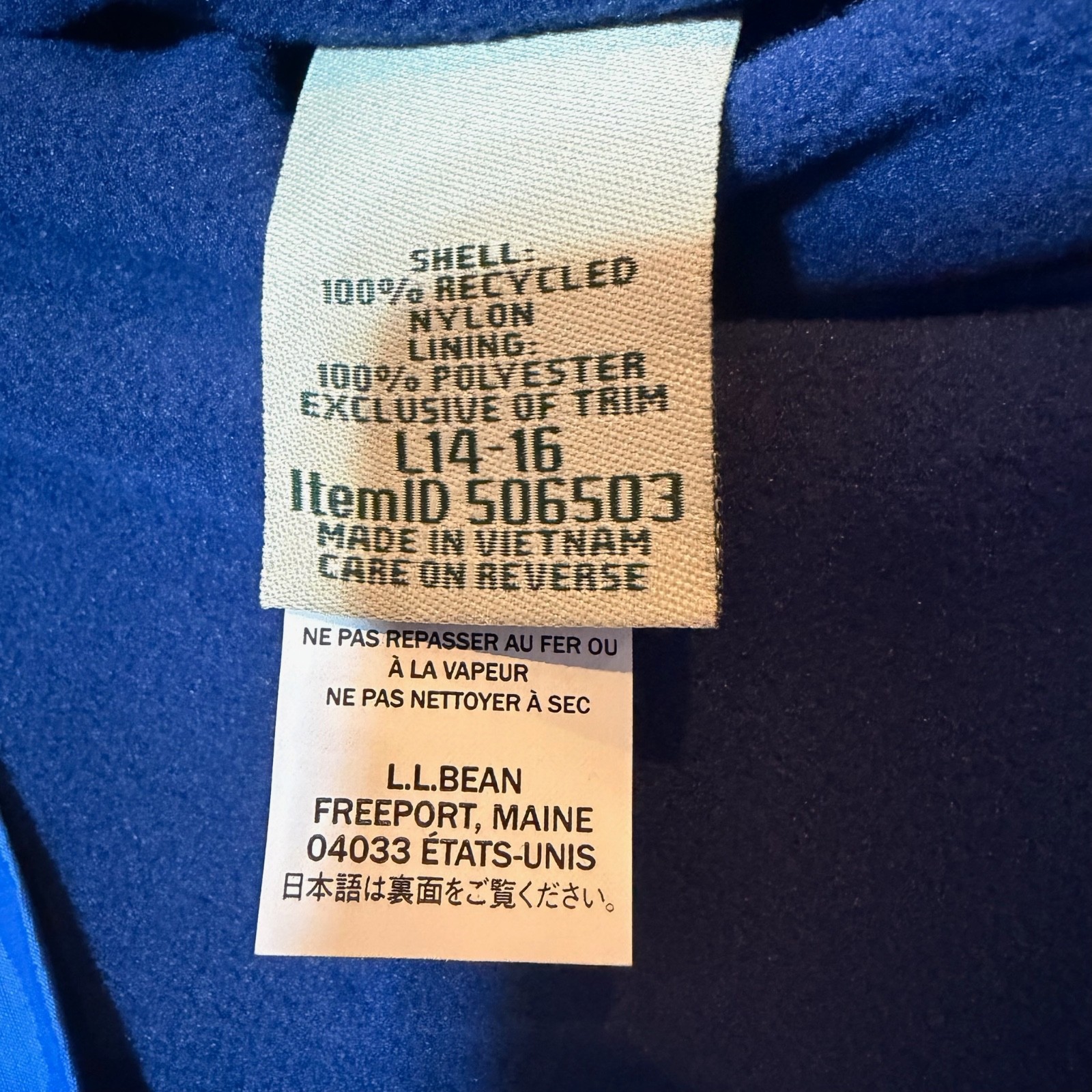 NEW LL Bean Jacket Youth Kids Large 14-16 Blue Shell Full Zip Hood Boys Outdoors