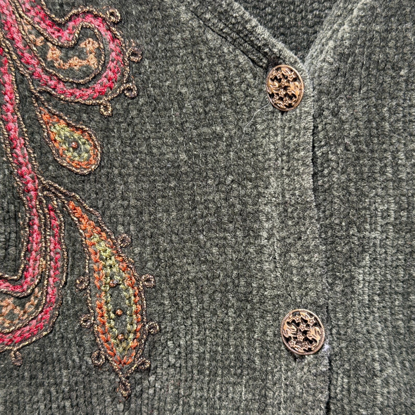 Vintage 90s Koret Velour Vest Green Floral Embroidered Womens M Knit Heritage