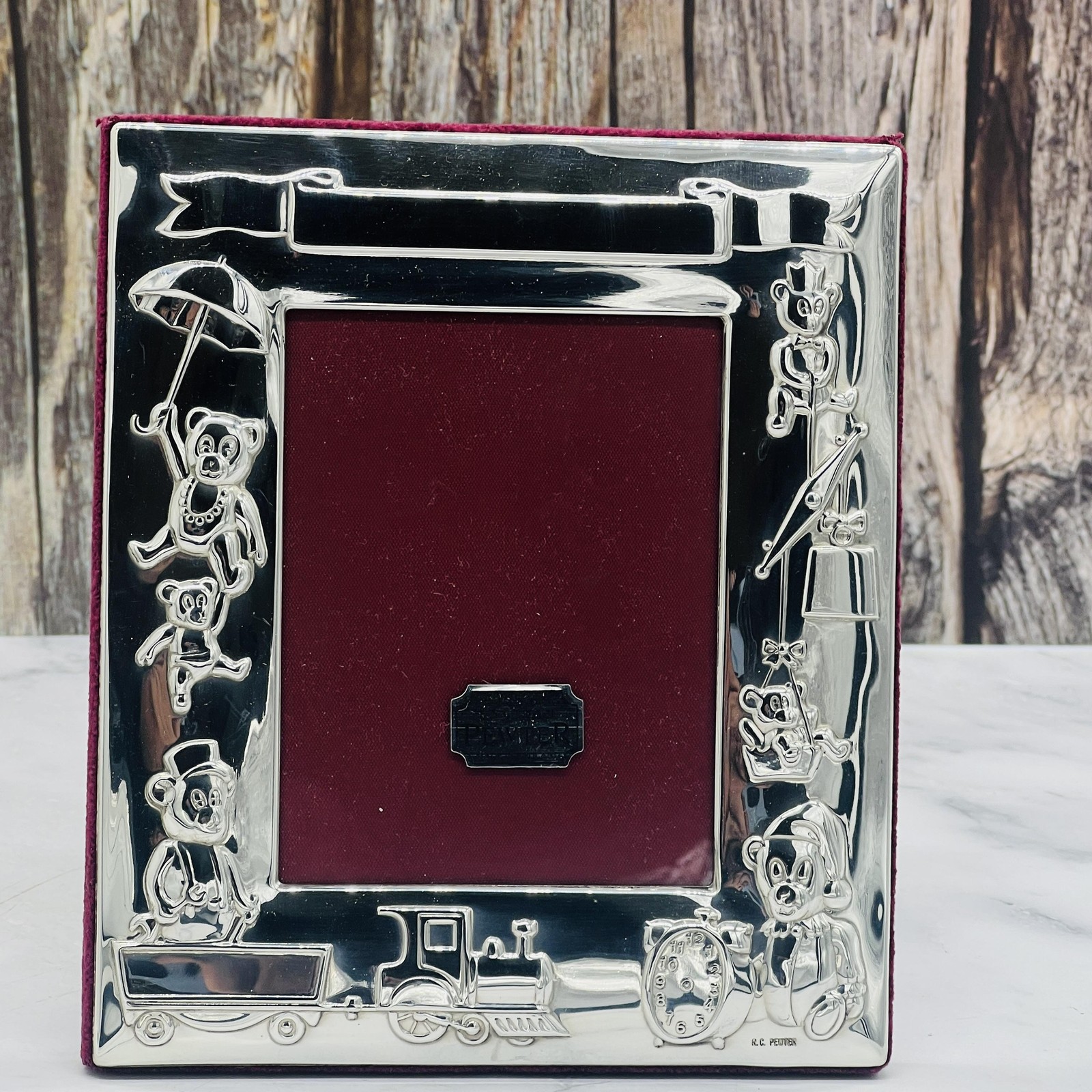 R.C. Pewter Baby Photo Frame Teddy Bears Fine English Made England Nursery NEW