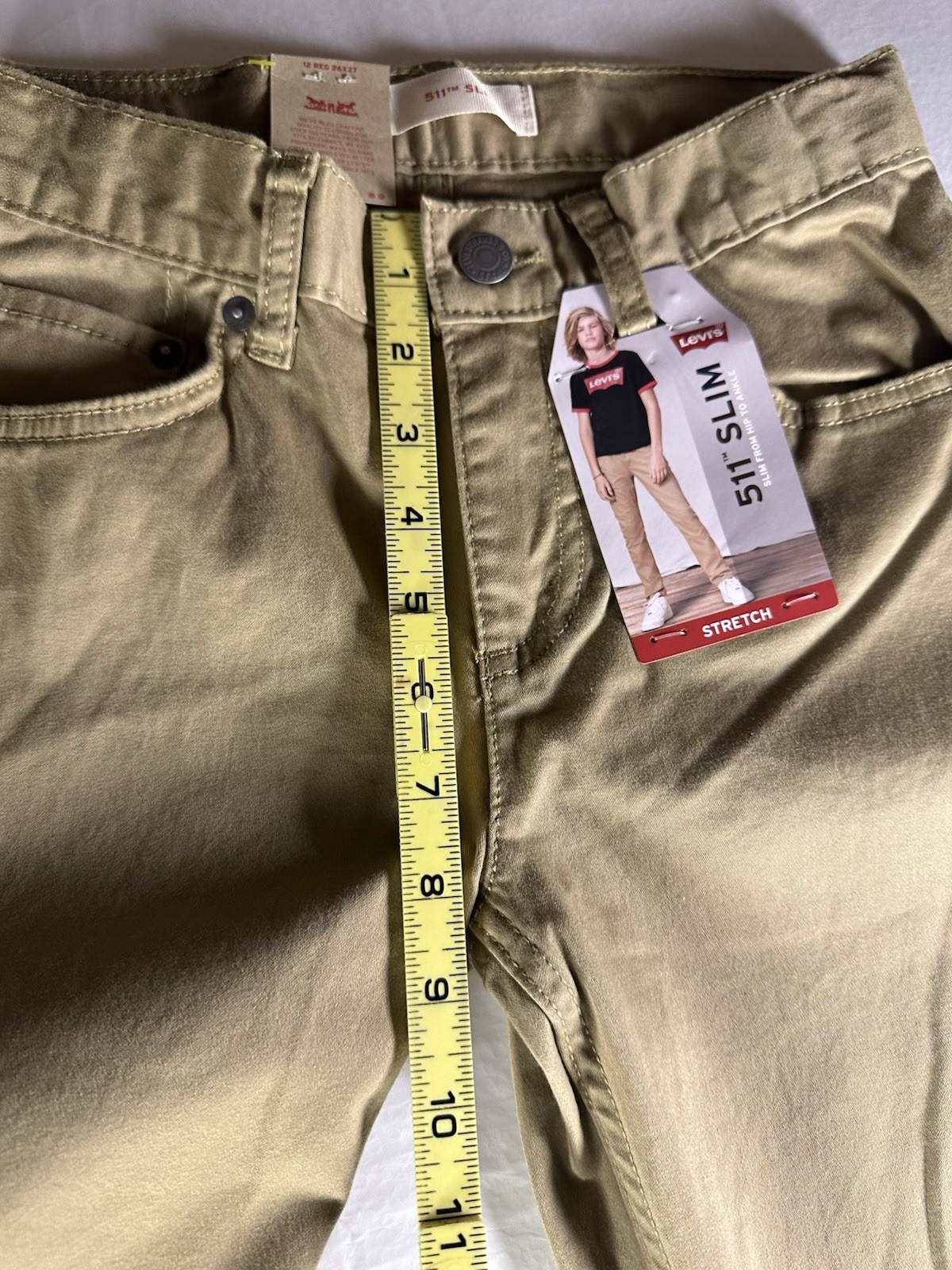 Levi s 511 Khaki Youth Pants 12 Regular 26x27 NWT Beige Slim Fit Stretch