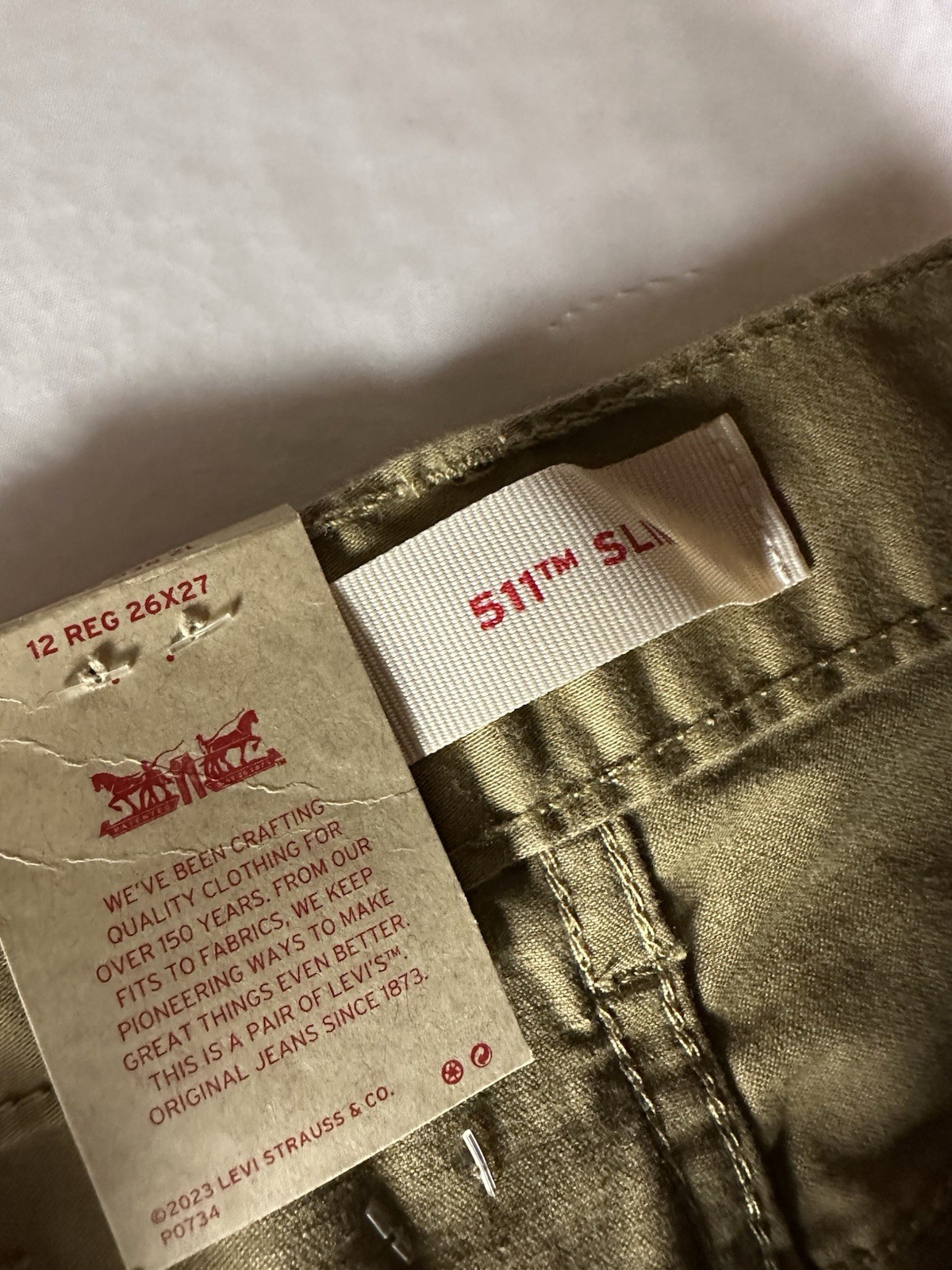 как выглядит Levi s 511 Khaki Youth Pants 12 Regular 26x27 NWT Beige Slim Fit Stretch фото
