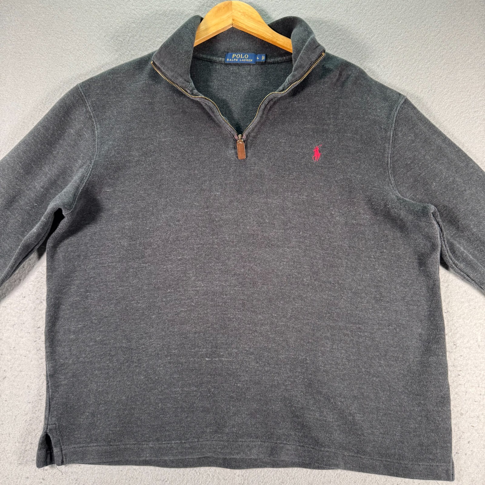 как выглядит Polo Ralph Lauren Quarter Zip Sweater Mens Large Gray Small Pony Comfort Classic фото
