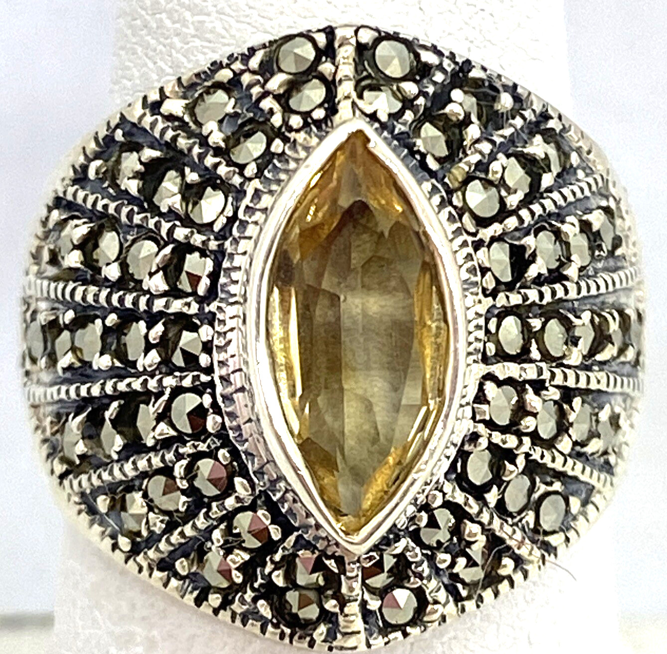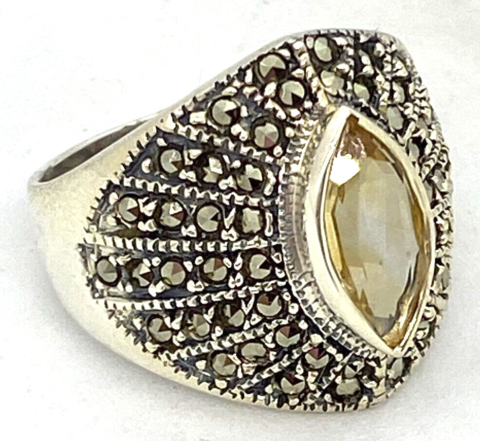 Sterling Silver / 925 Citrine Marcasite Signed NF RING Size 8