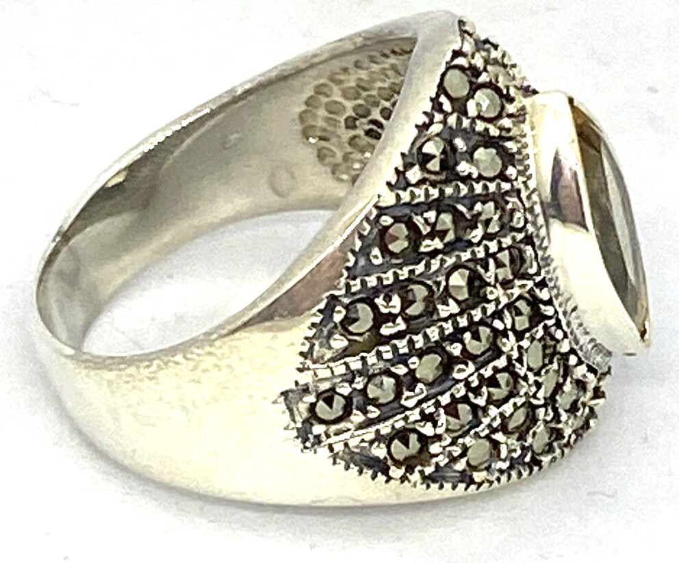 как выглядит Sterling Silver / 925 Citrine Marcasite Signed NF RING Size 8 фото