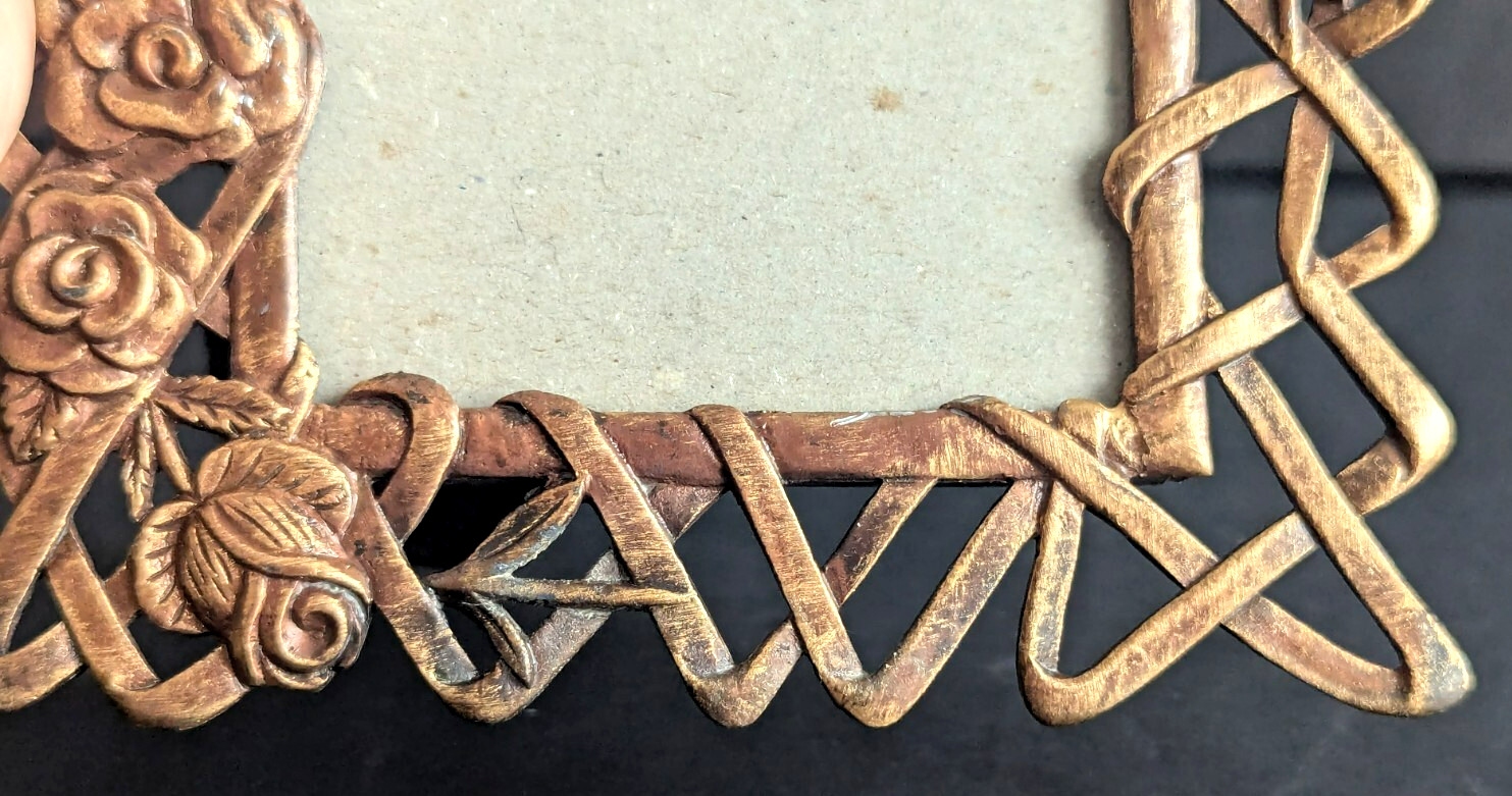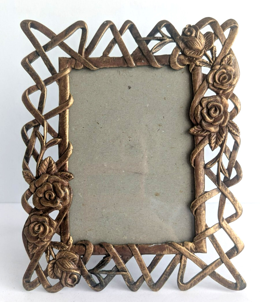Vintage Ornate Metal Picture Frame Roses Leaves Gold Tone Hollywood Regency 7x5