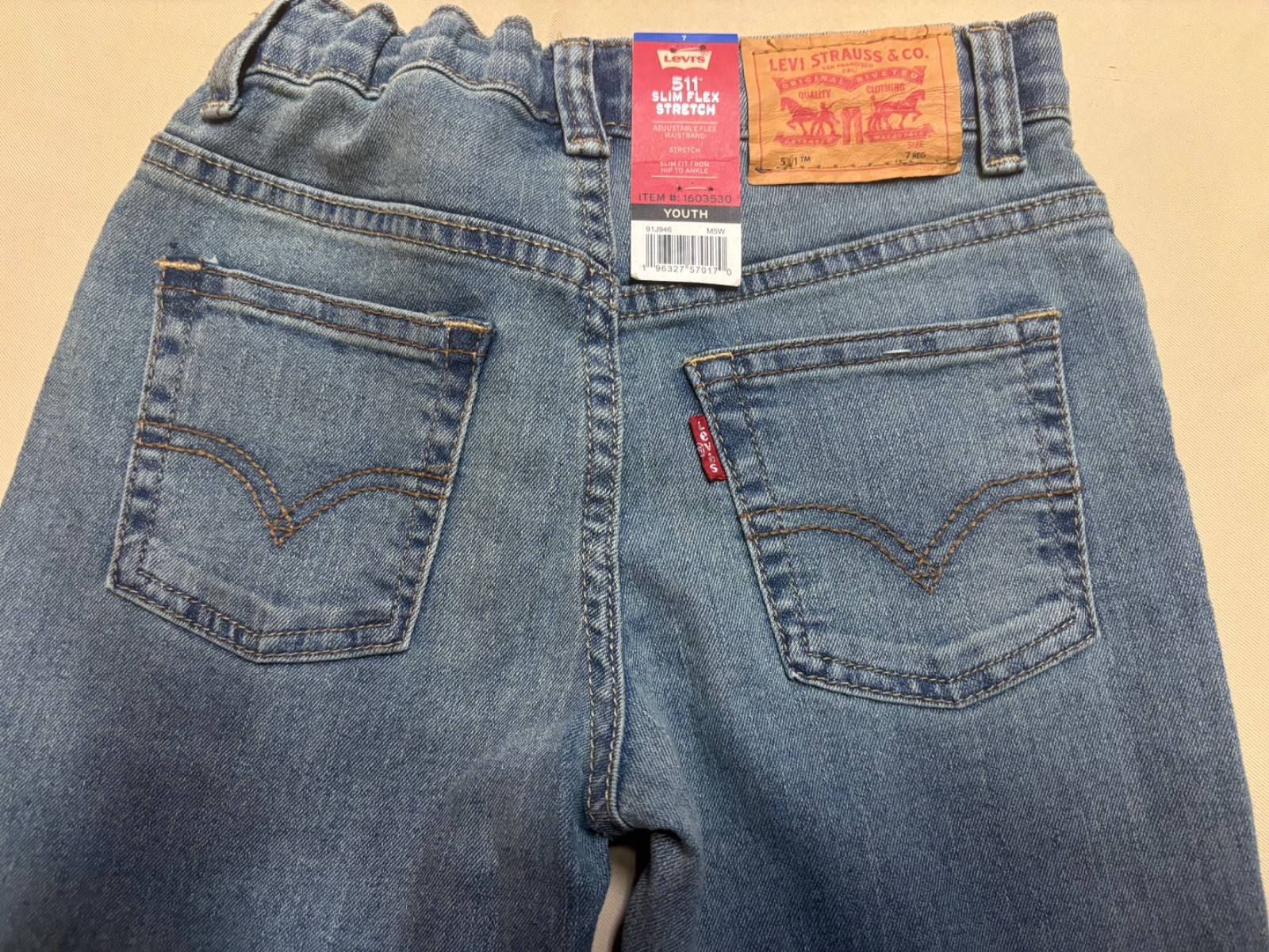 как выглядит NEW Levis 511 Youth Size 7 Slim Flex Stretch Pants Jeans Adjustable Waist фото