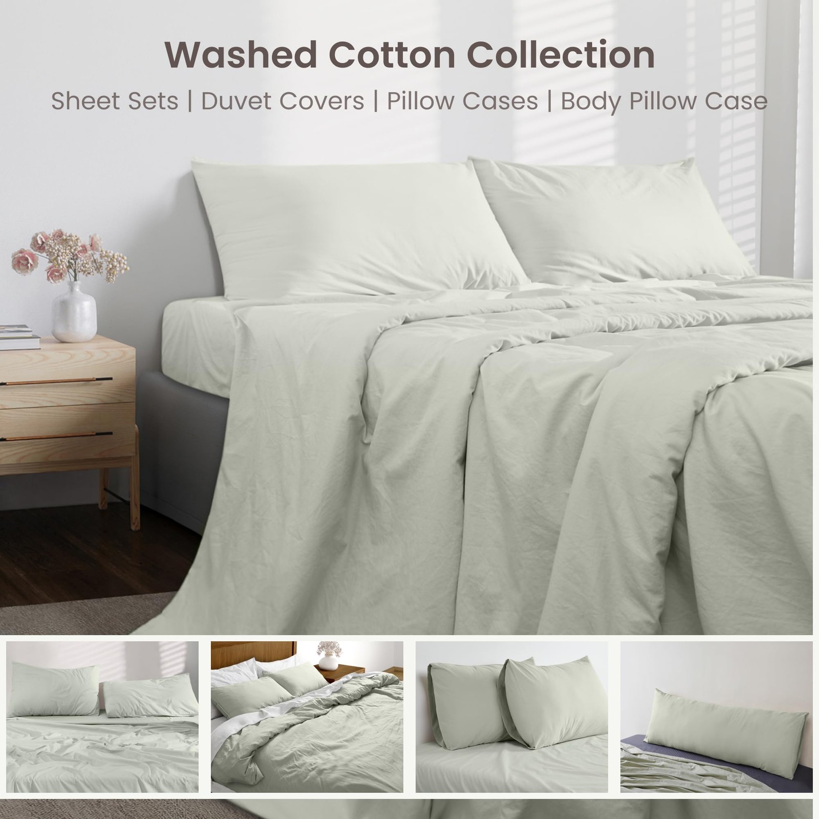 100 Organic Washed Cotton Percale Weave Duvet Cover Queen Set GOTS Certifi...