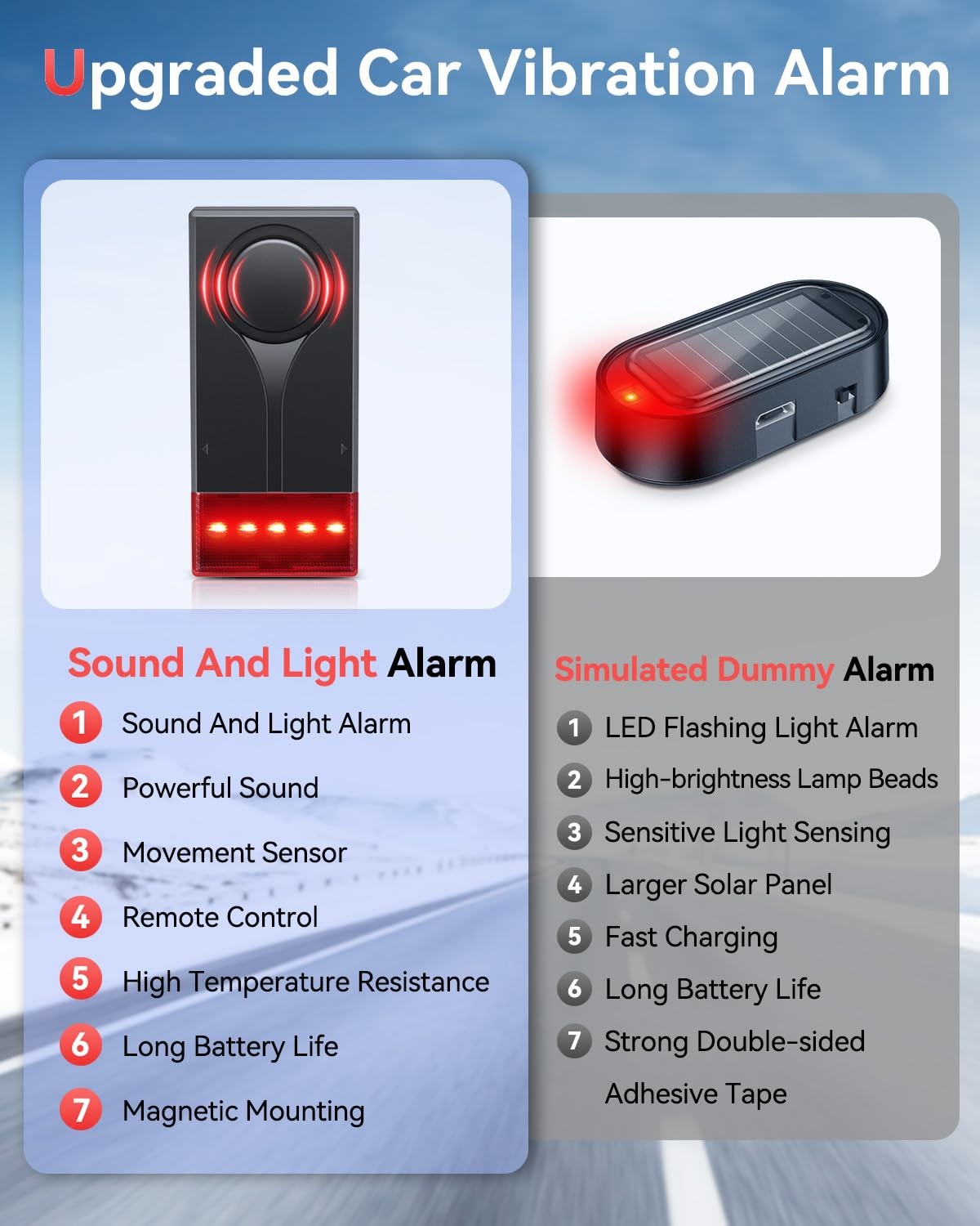 Car Vibration Sound Light Alarm with Remote, 108dB Automobile Anti-Theft Vi...