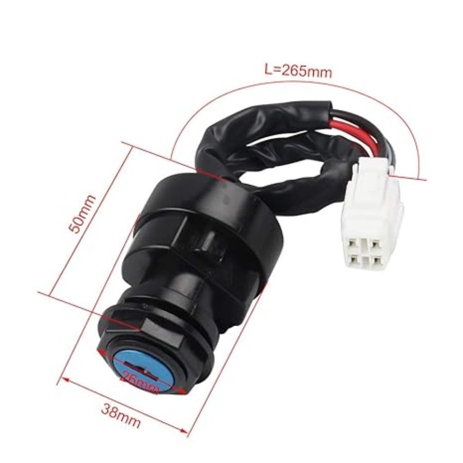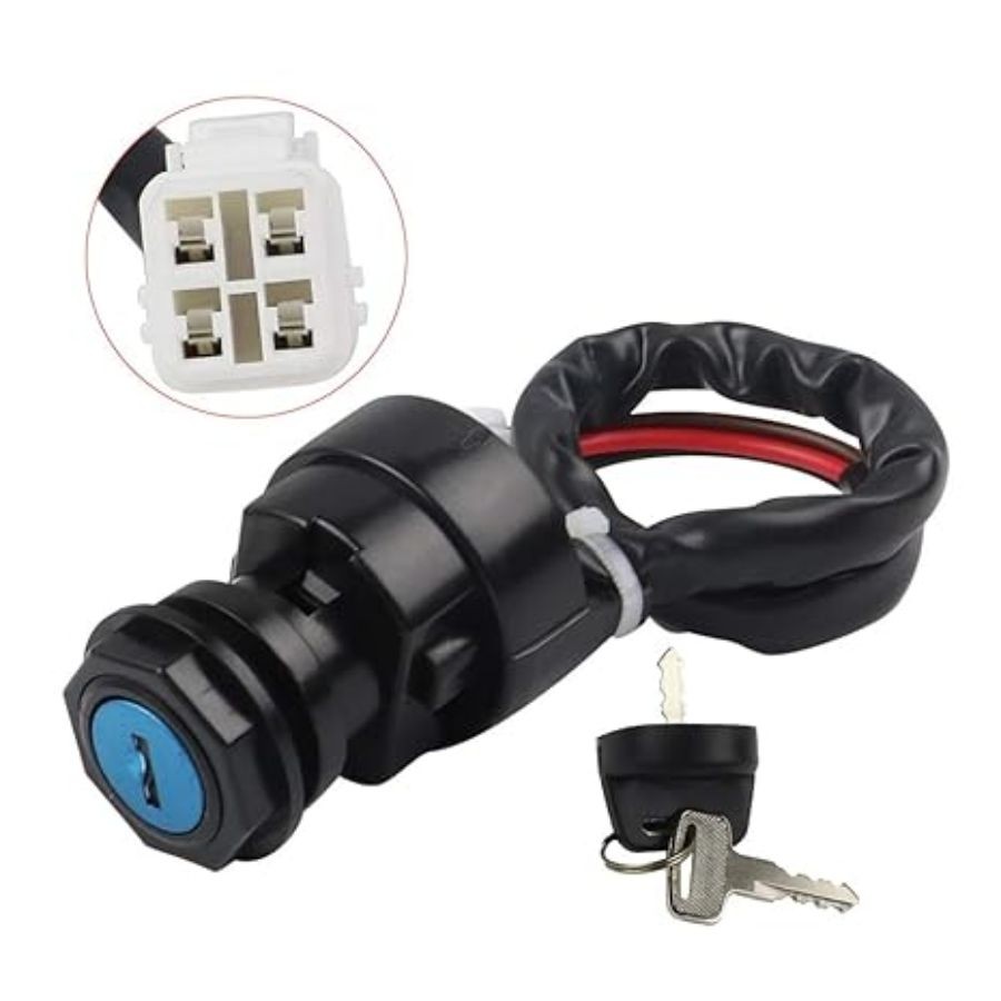 • 4 Pin Ignition Key Switch with 2 Keys for Wolverine Grizzly Kodiak YFZ450 YFM400