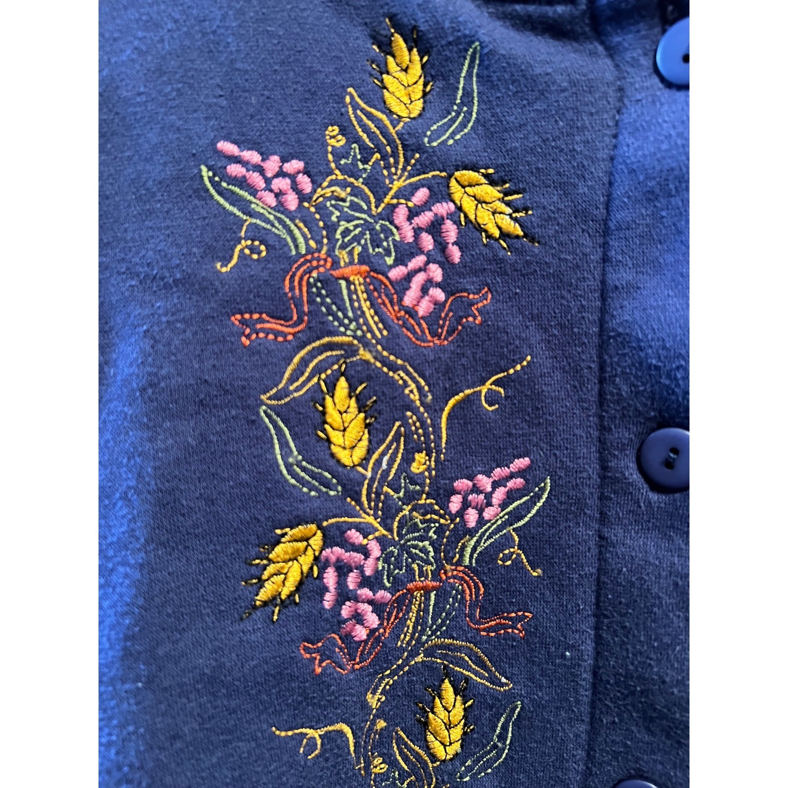 как выглядит VTG Granny Cardigan XL Embroidered Button Up Sweatshirt Blue Floral Wheat фото