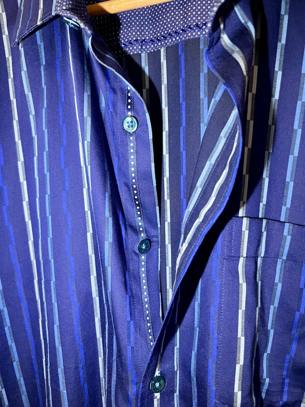 как выглядит Bugatchi Uomo Men s Dress Shirt Blue Striped Long Sleeve 100 Cotton фото