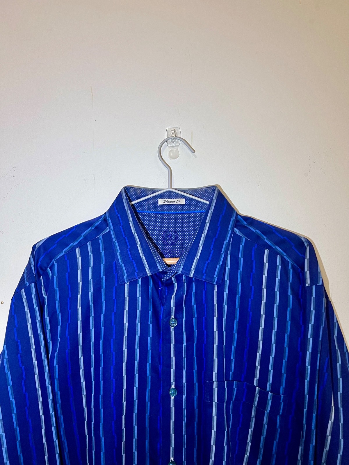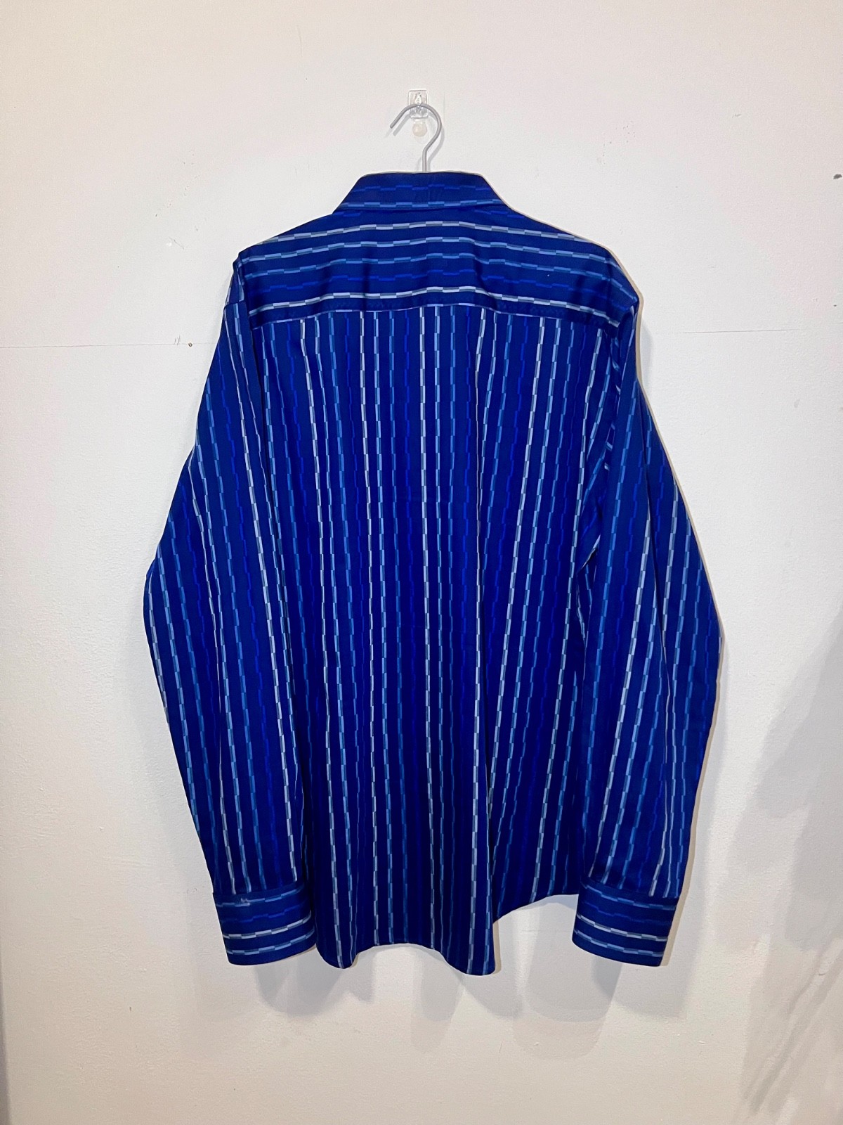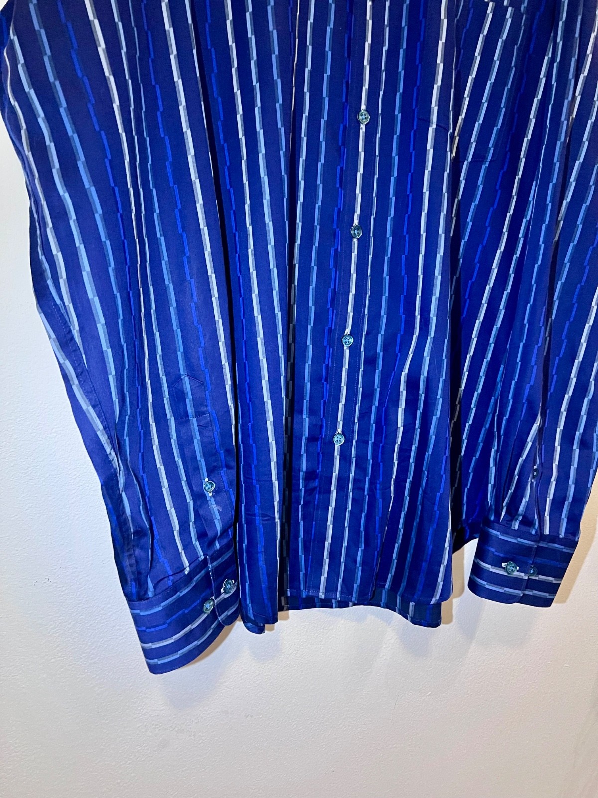 Bugatchi Uomo Men s Dress Shirt Blue Striped Long Sleeve 100 Cotton