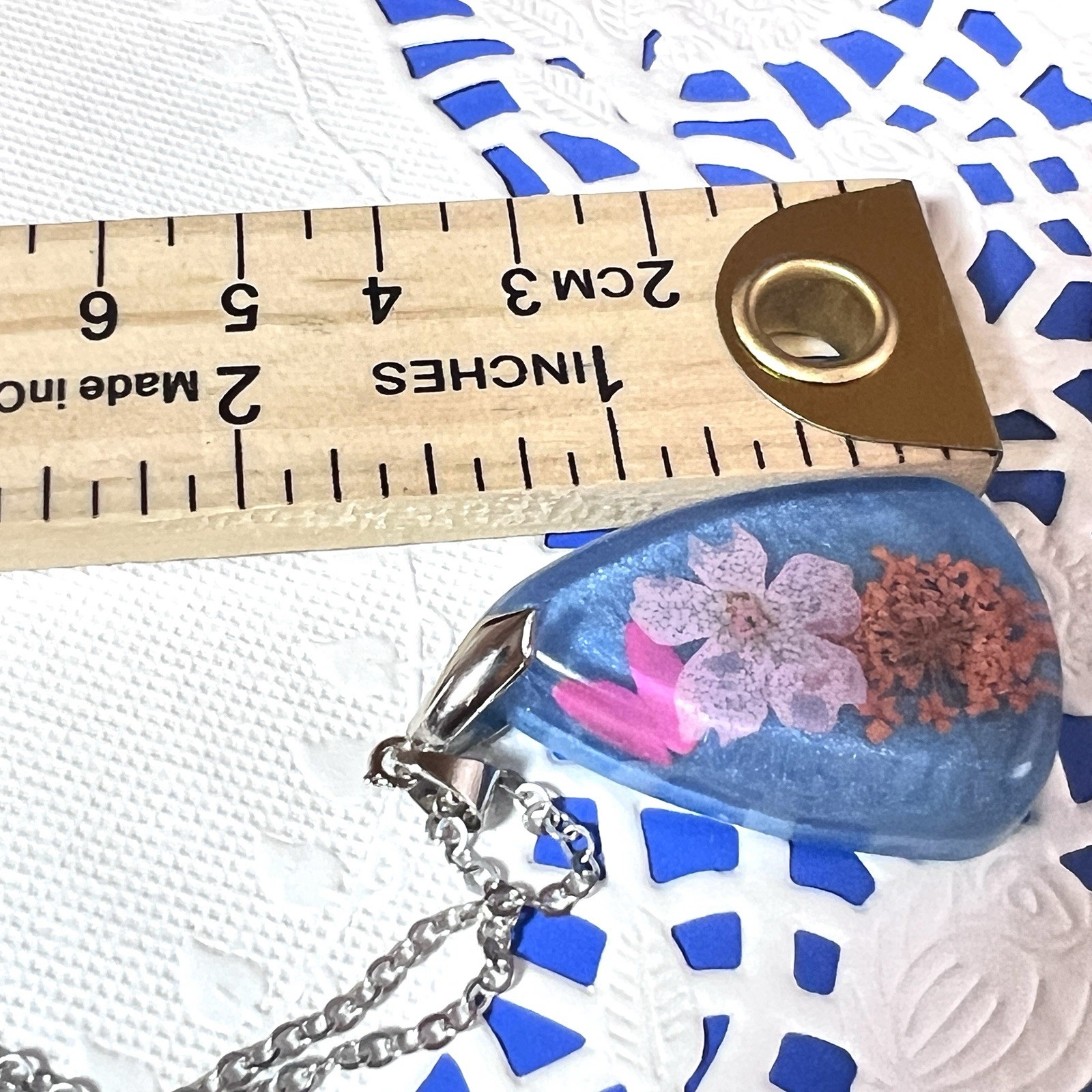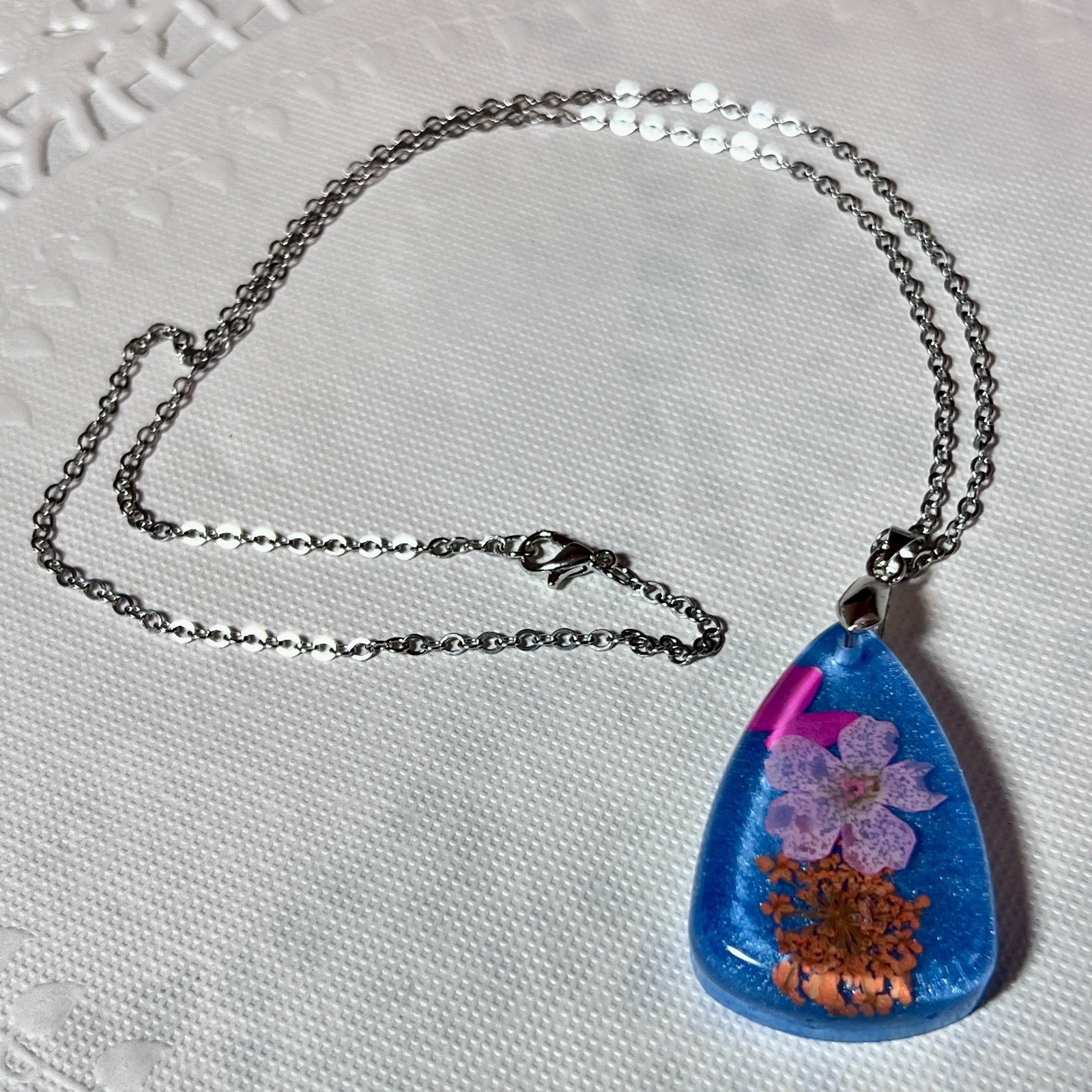 как выглядит Colorful Real Dried Flower Pendant Necklace 18" Chain 1.5" Pendant Handmade фото