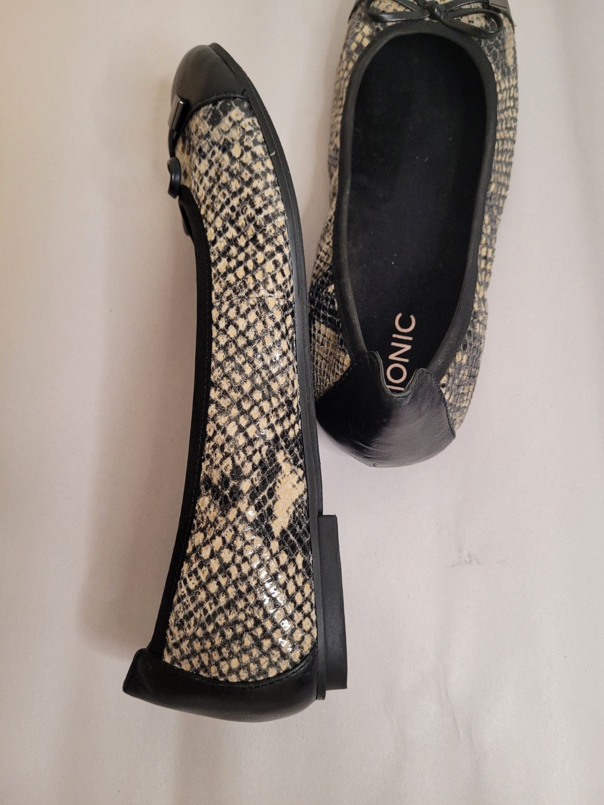 как выглядит Vionic Minna Ballet Flats Women s 9 Snake Embossed Comfort Bow Slip On фото