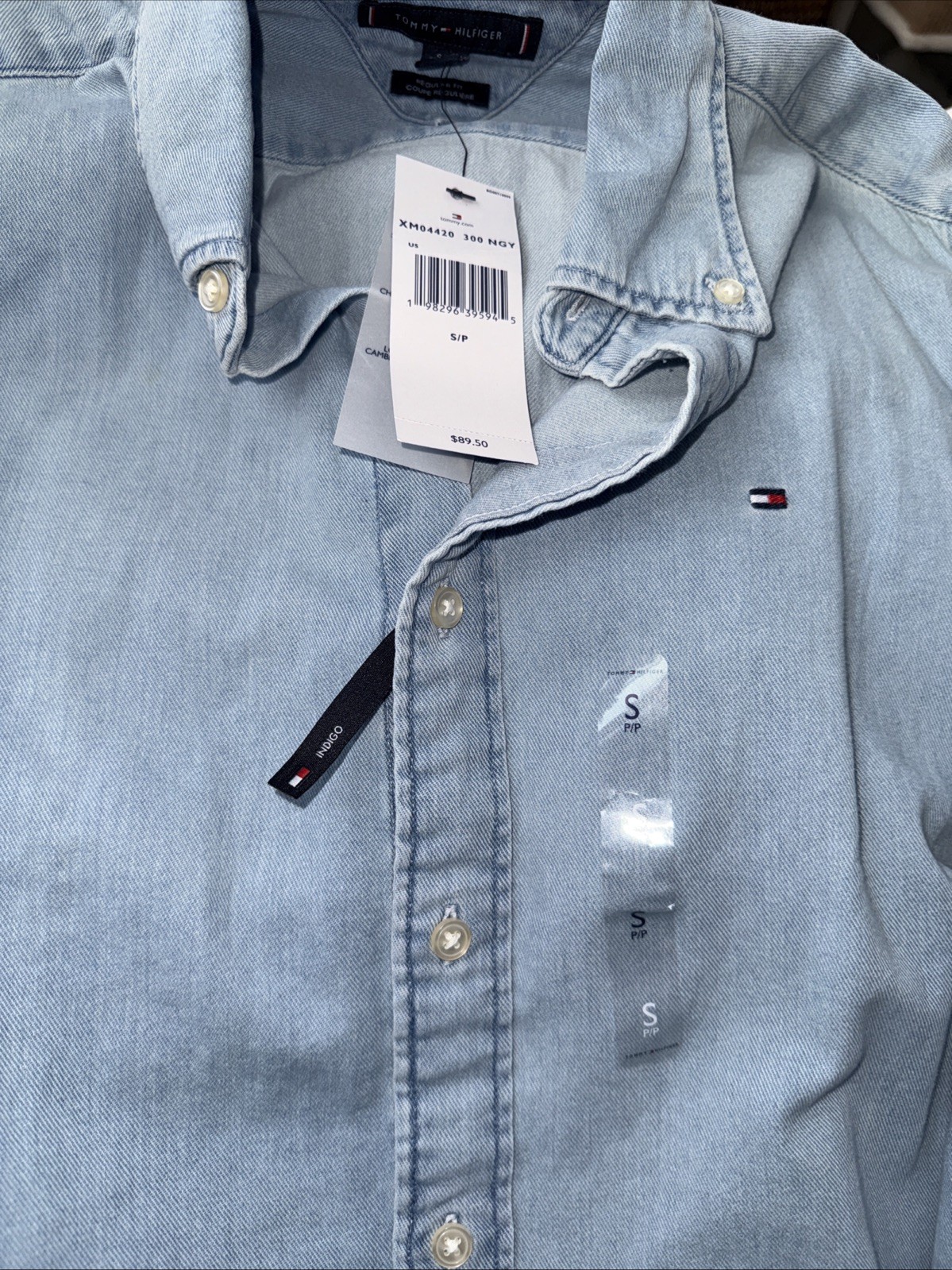 как выглядит NWT Tommy Hilfiger Mens Regular Fit Denim Shirt Size Small фото