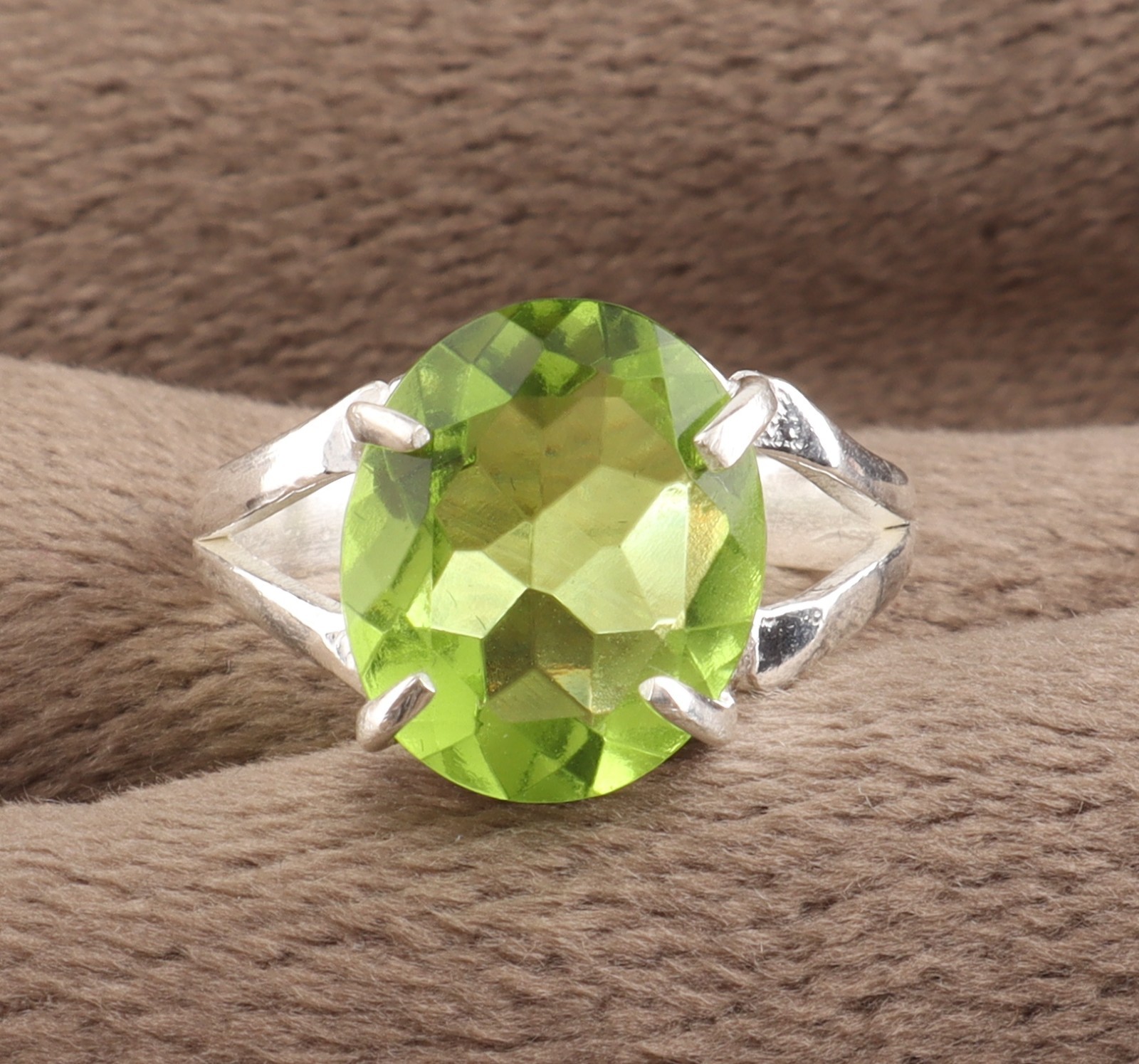 Elegant Peridot Gemstone 925 Sterling Silver Handmade Jewelry Ring All Size