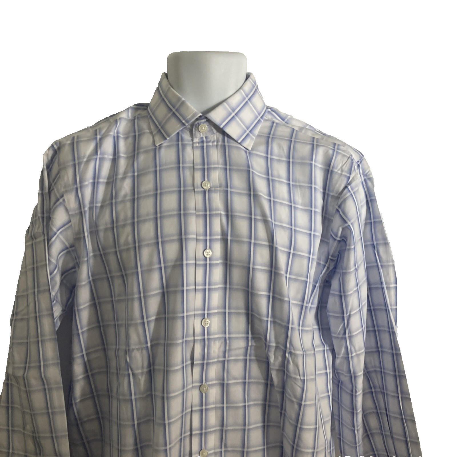 T. M. Lewin Lewin 100 Regular Fit Mens Dress Shirt 15.5 33 Blue White Plaid
