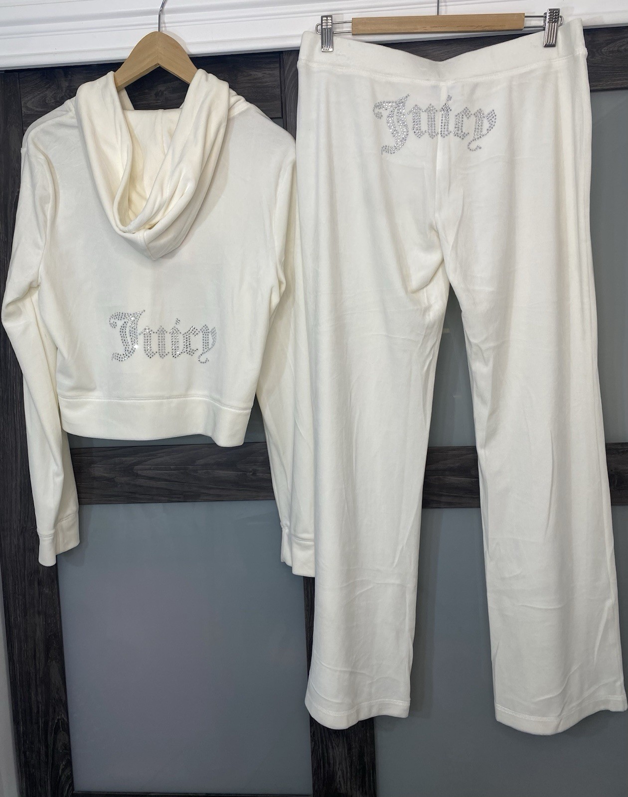 2pc Juicy Couture Velour Bling White Flare Leg Tracksuit Set Women s Large NWT