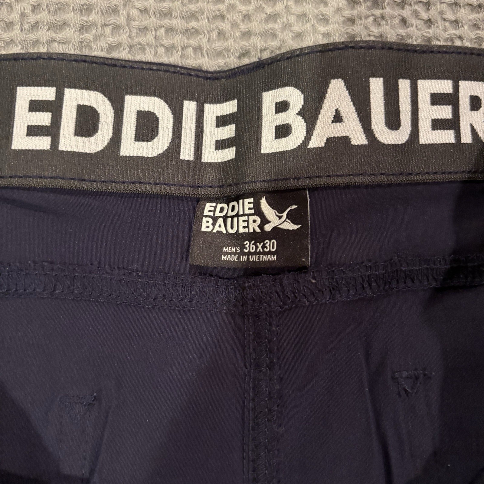 как выглядит Eddie Bauer Rainier Tech Pants Men 36x32 Navy Blue Stretch Nylon Water Repellent фото