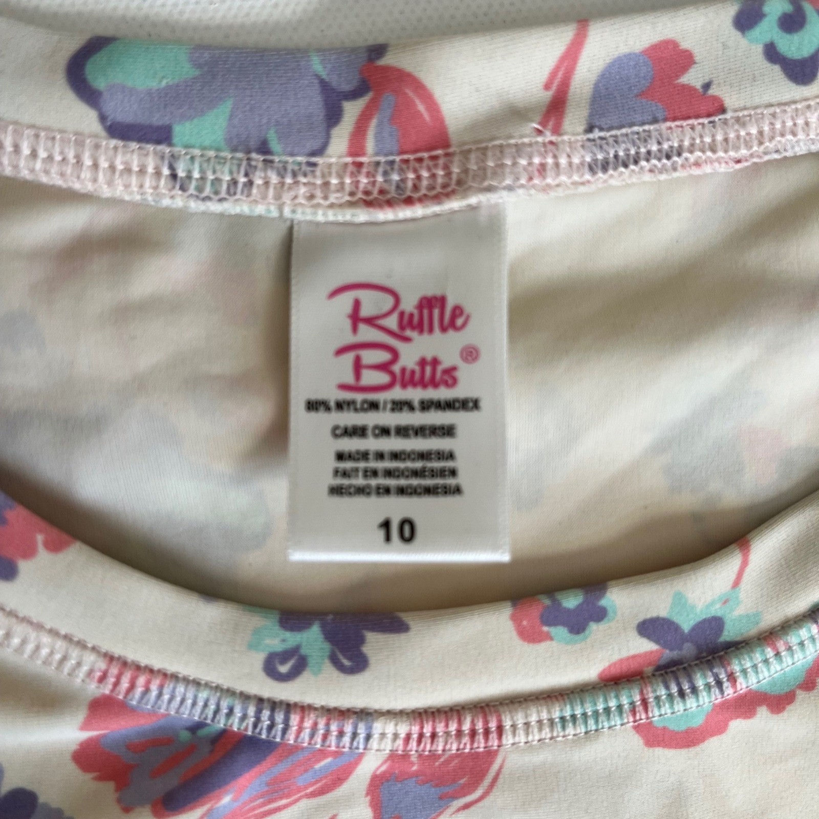 Ruffle Butts Girls Long Sleeve Rash Guard Swim Shirt Cream Floral Size 10