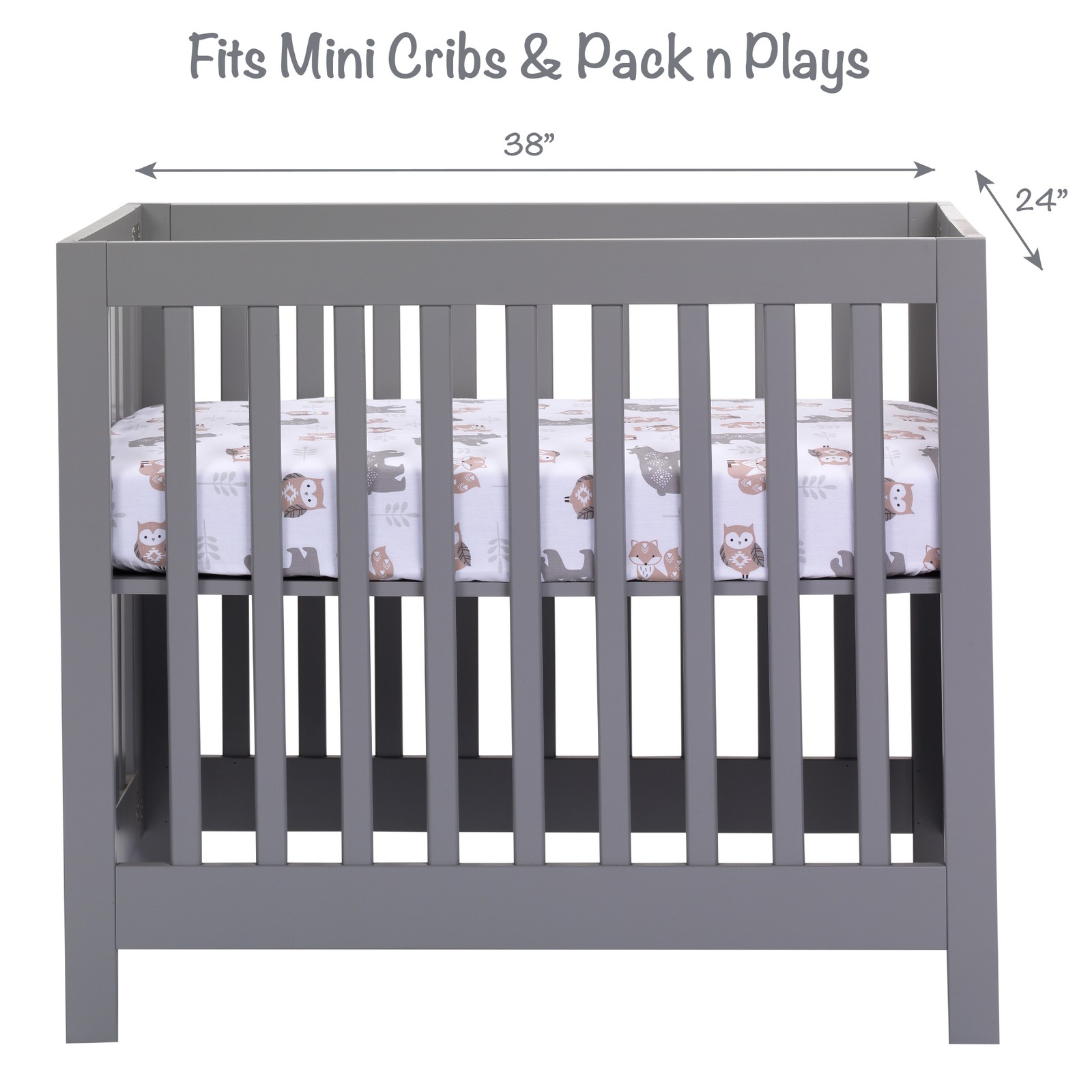 Lambs Ivy Woodland Forest Animals White/Gray Cotton Fitted Mini Crib Sheet