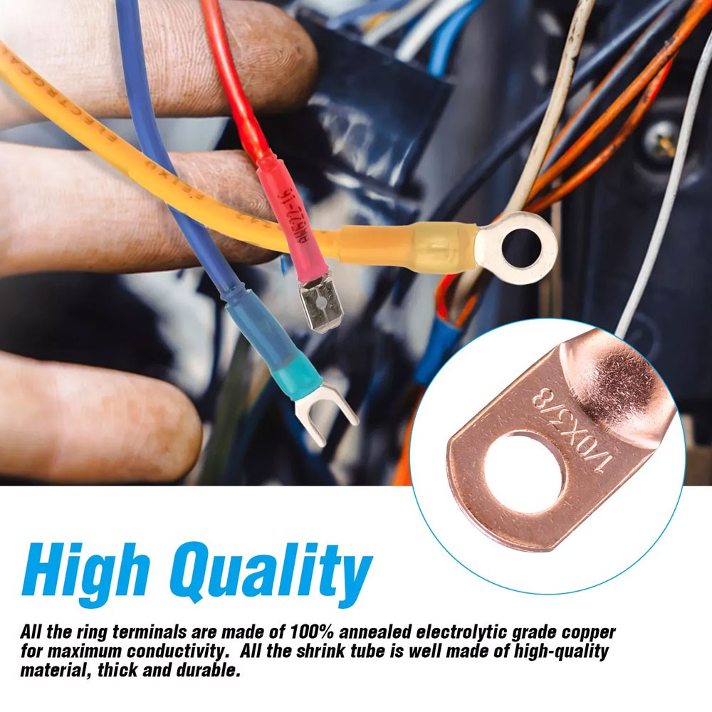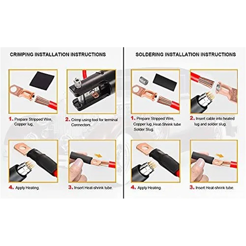 40PCS 1/0AWG 3/8 Gauge Copper Lugs W/ BLACK RED Heat Shrink Ring Terminals Wire