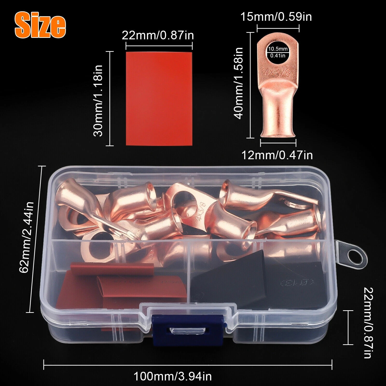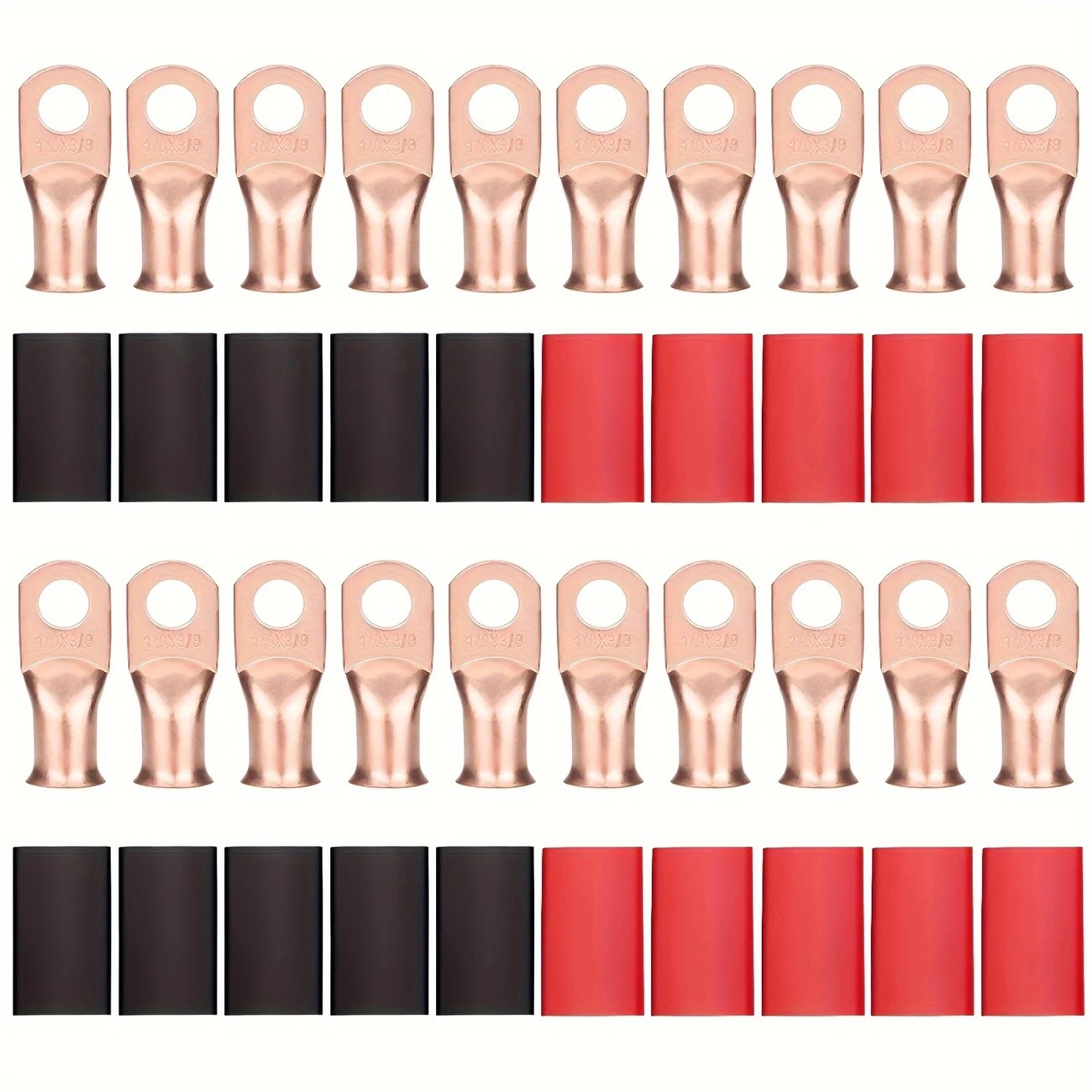 как выглядит 40PCS 1/0AWG 3/8 Gauge Copper Lugs W/ BLACK RED Heat Shrink Ring Terminals Wire фото
