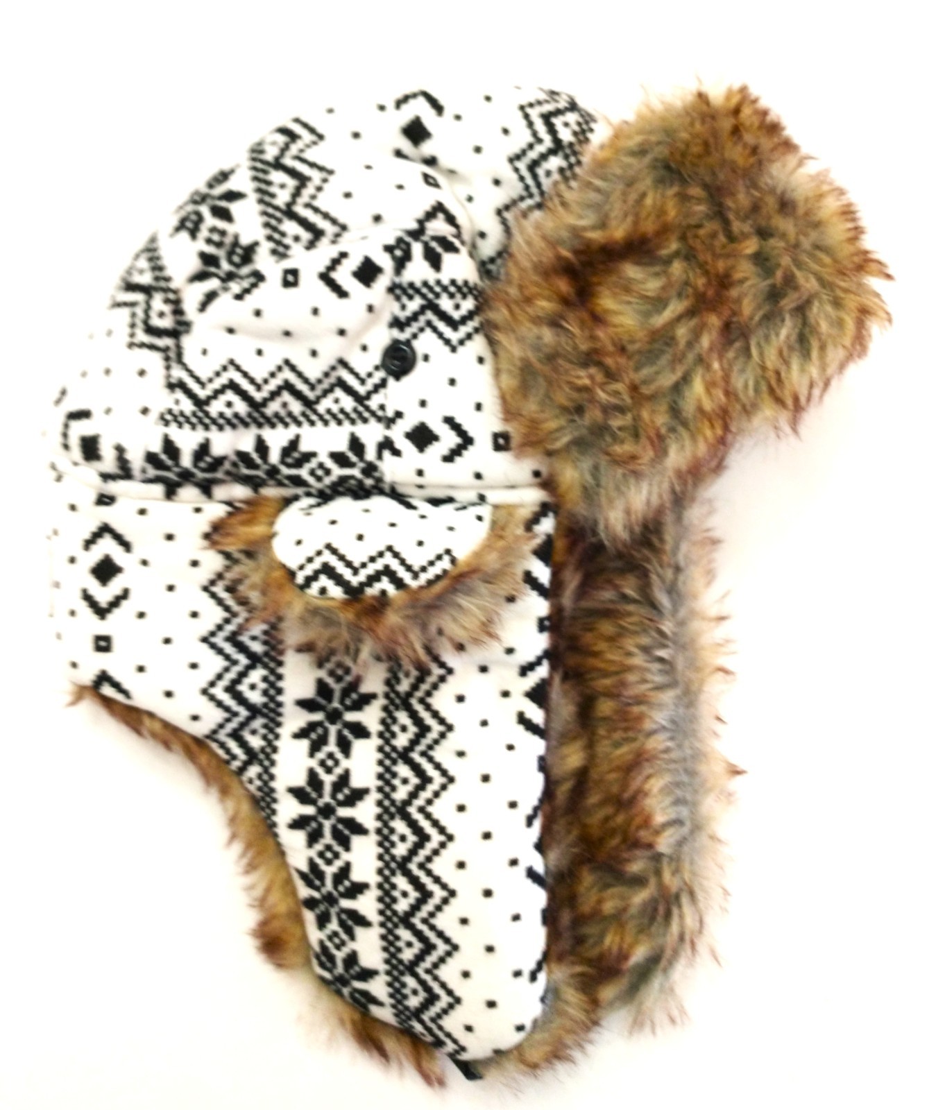 SA Company Nordic Pattern With Faux Fur, Ear Flaps, Buckle Trapper Hat One Size