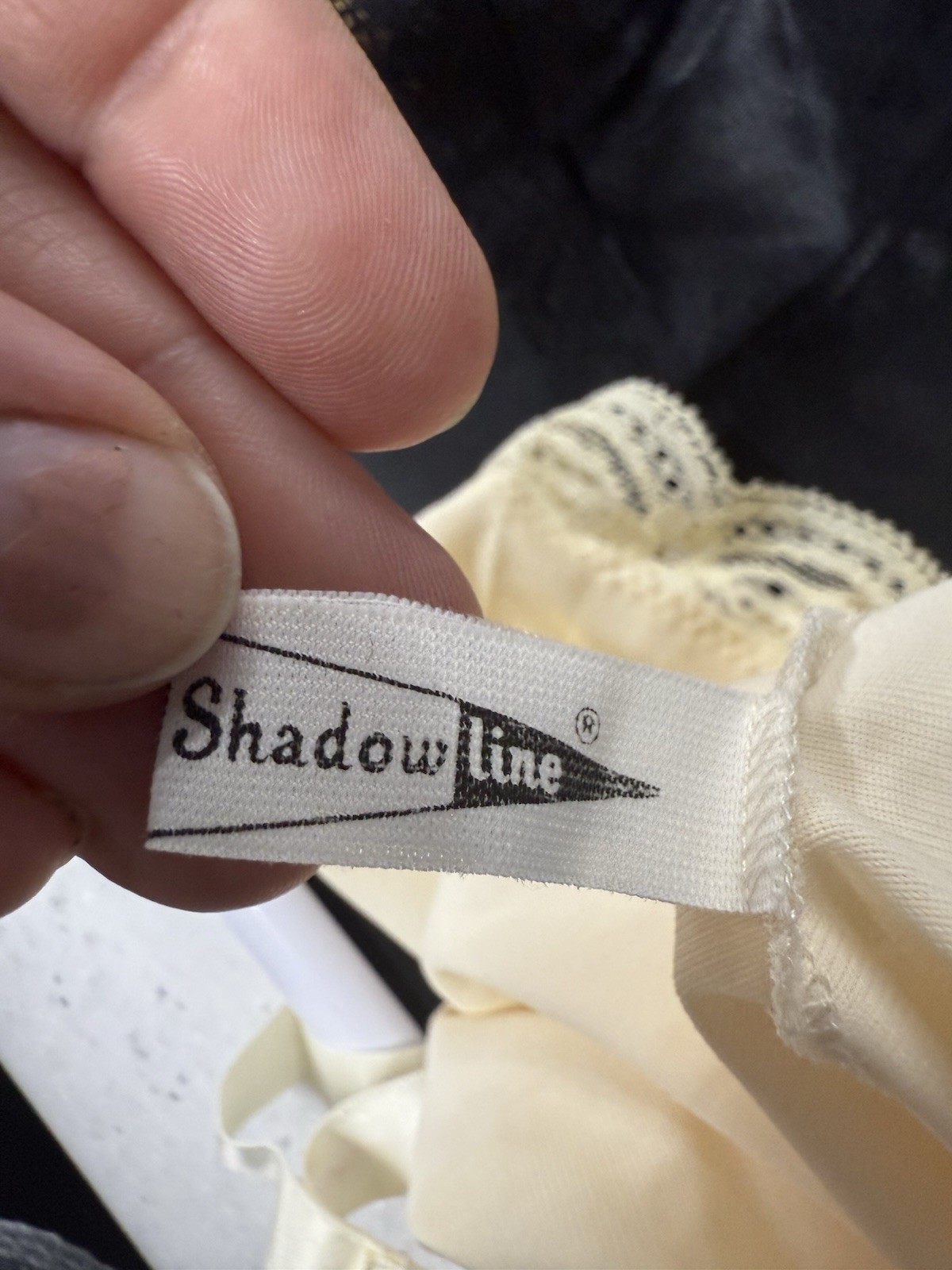 как выглядит Vintage Lingerie Shadowline Ivory And Black Set Lace Trim Camisole Slip Top фото