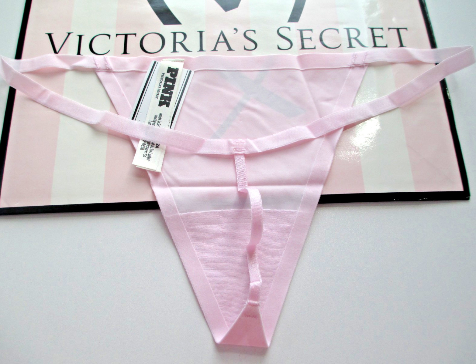 как выглядит VICTORIAS SECRET PINK No Show V-String Thong Panty S M L XL Pink FREE SHIP 4 фото