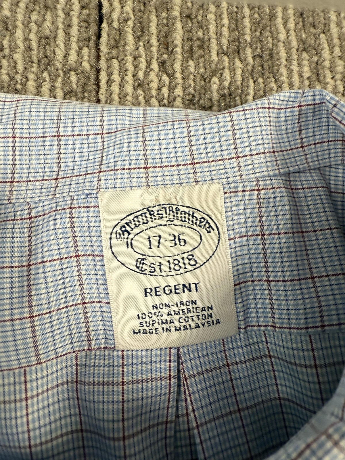 Brooks Brothers Dress Shirt Mens 17-36 Blue Check Regent Non Iron Supima Cotton