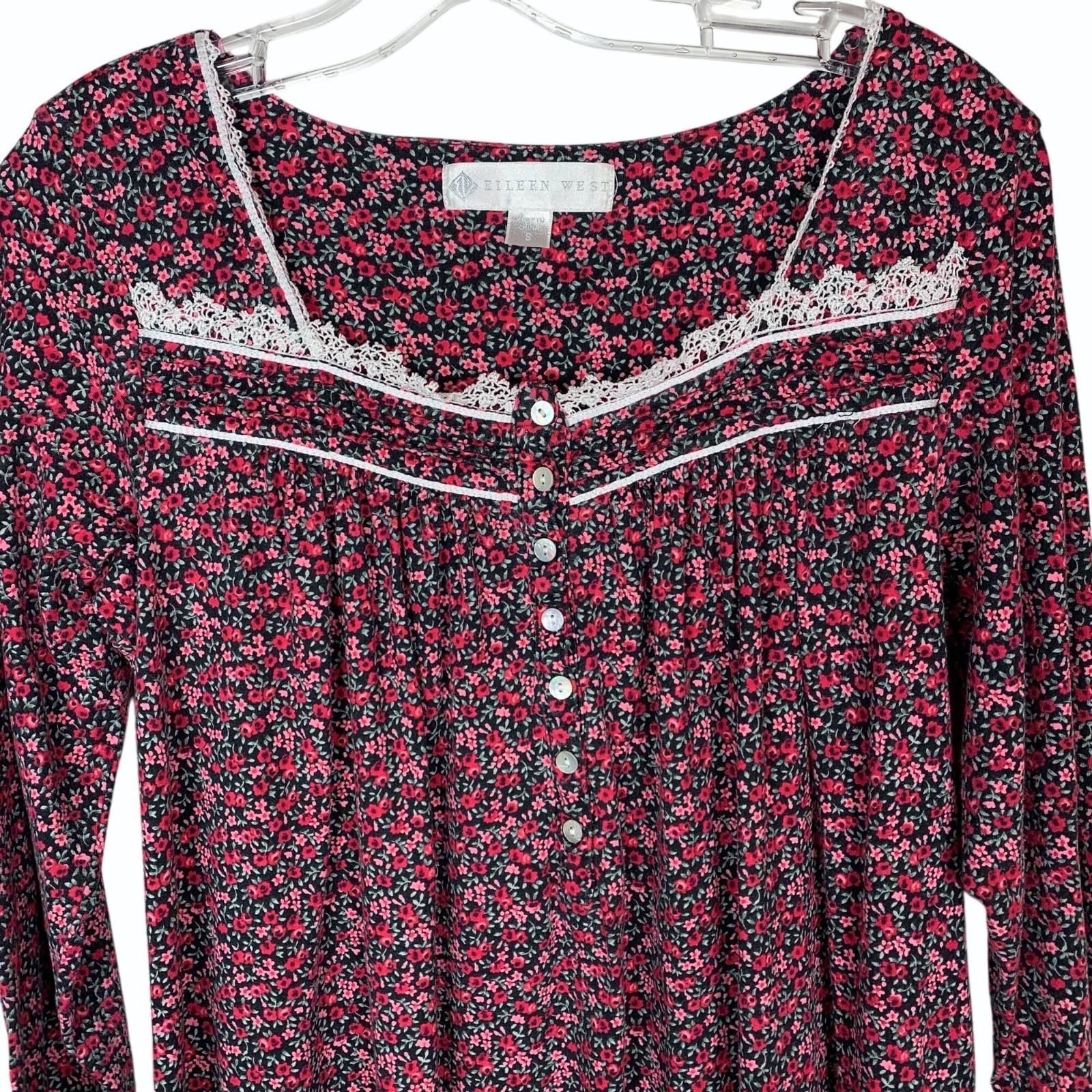 как выглядит Eileen West Size Small Long Sleeve Floral Cotton Knit Ballet Nightgown Lace Trim фото