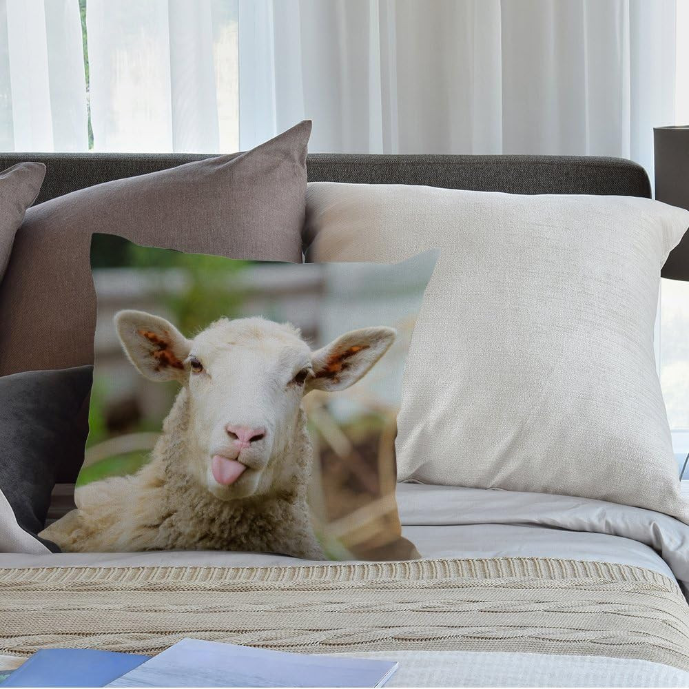 Sheep Pillow Cover, Decorative Throw Pillow with Funny Sheep Portrait Showing To