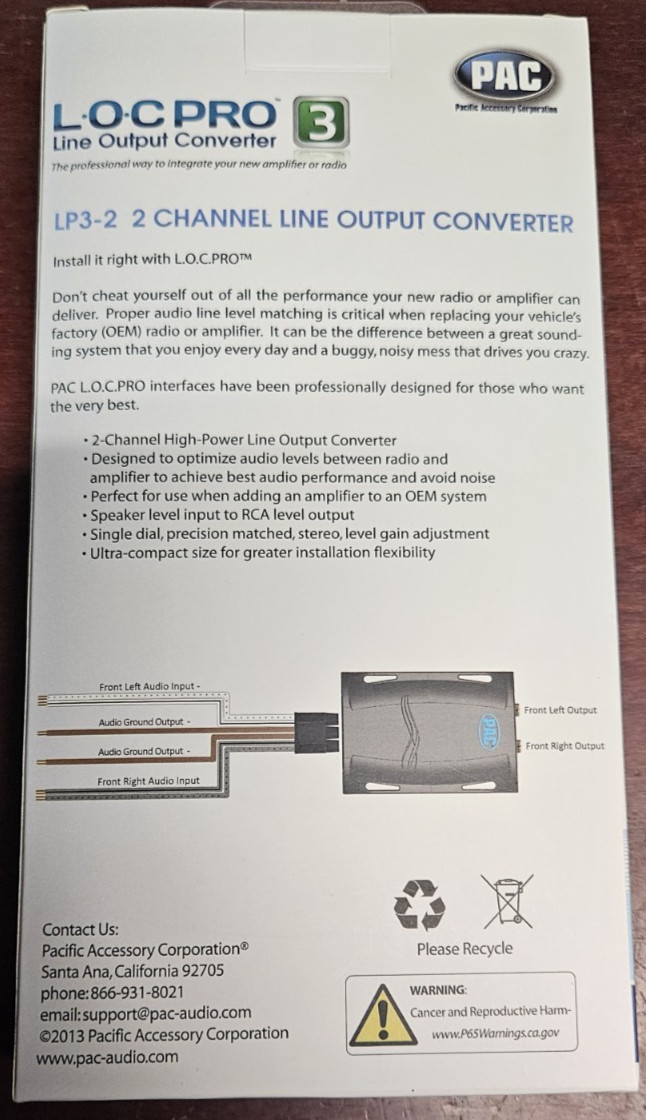PAC L.O.C. PRO 3 Series LP3-2 2-Channel Line Output Converter Radio or Amplifier