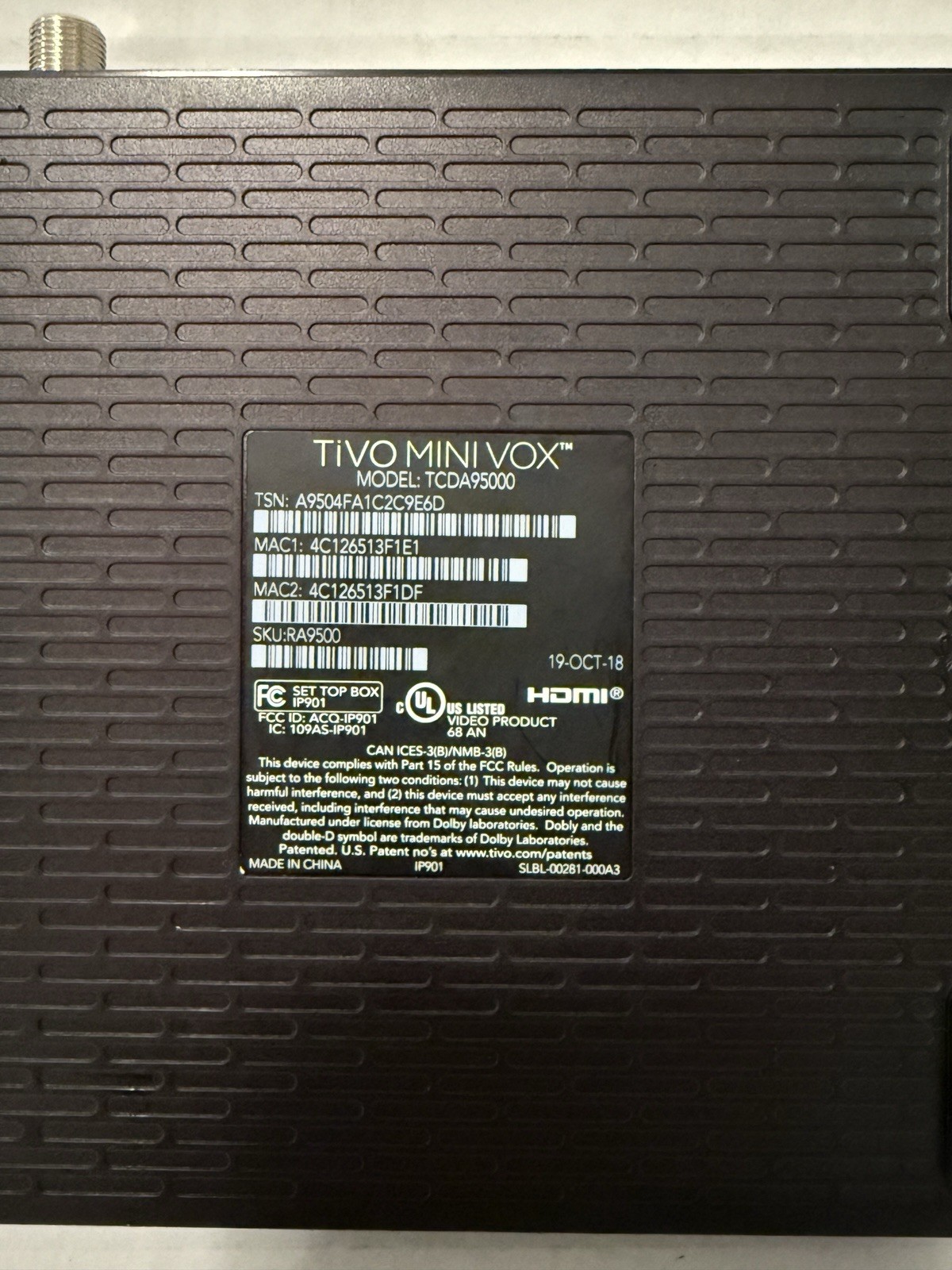 TiVo MINI VOX Streaming Media Player /Power Adapter TCDA95000/Sold as is