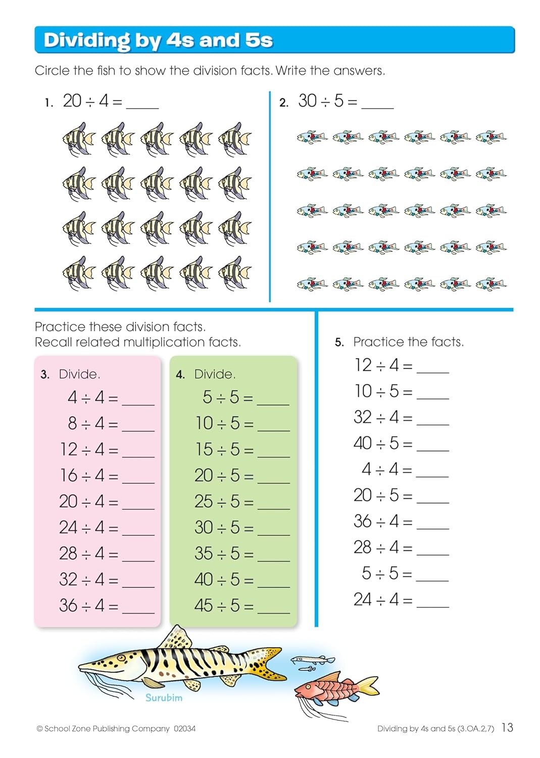 • School Zone Multiplication Division Workbook: 32 Pages, 3rd Grade, 4th Grade,