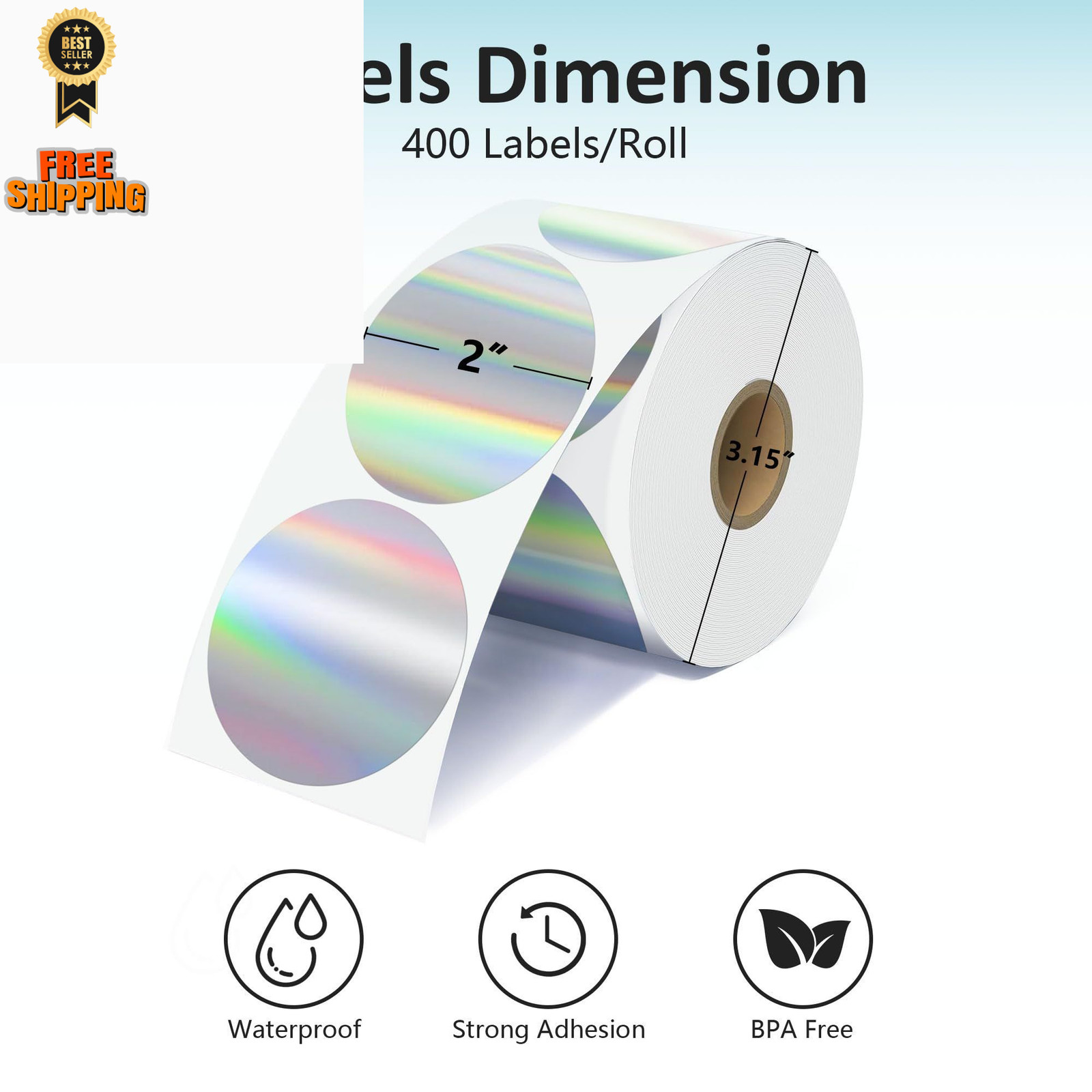 JOYIT 2'' Holographic Thermal Labels - Round-400 PCS, Silver
