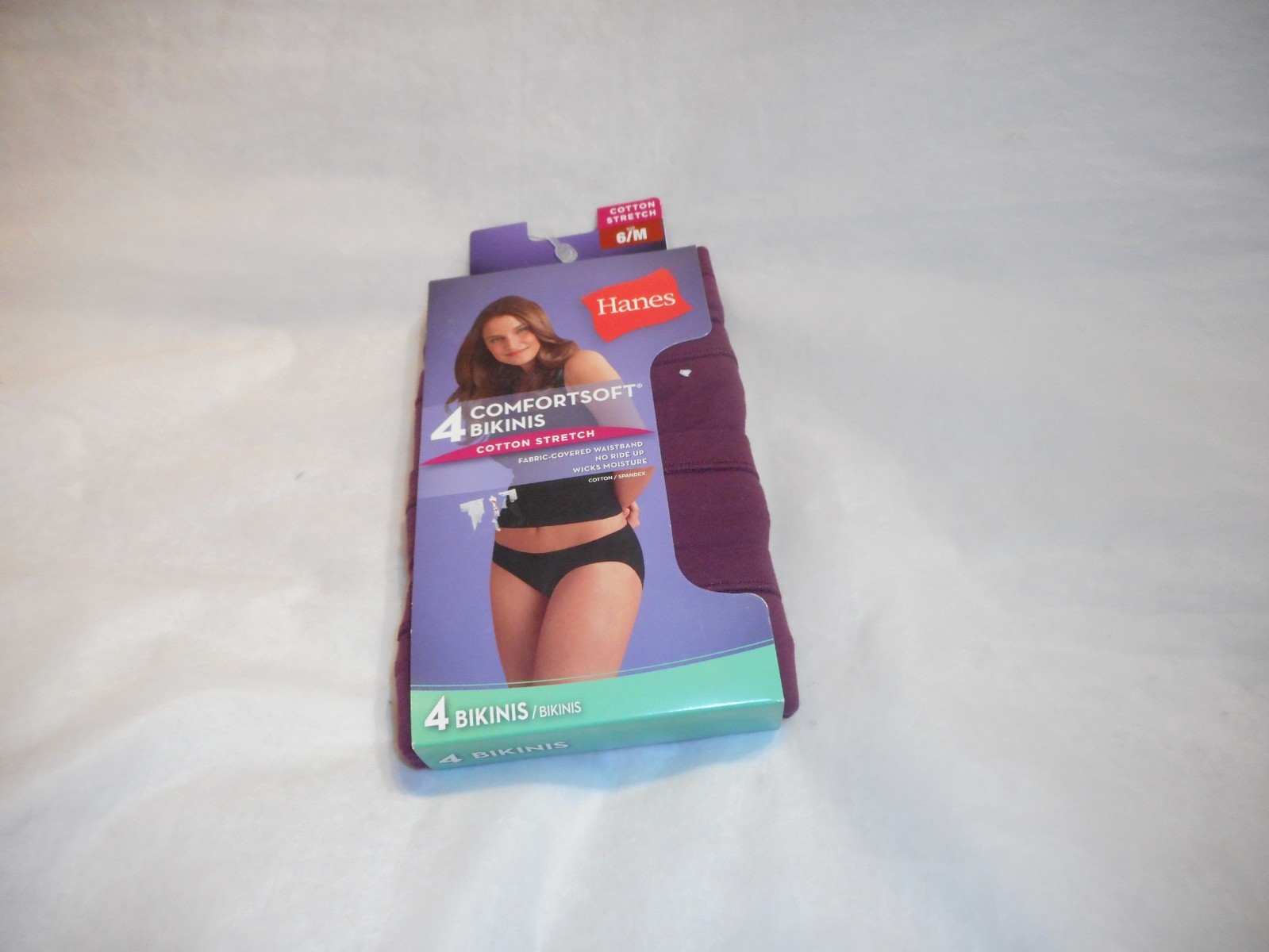 как выглядит Hanes 4 pk Comfortsoft Burgandy Bikini Cotton Stretch Panty Size 6/medium фото