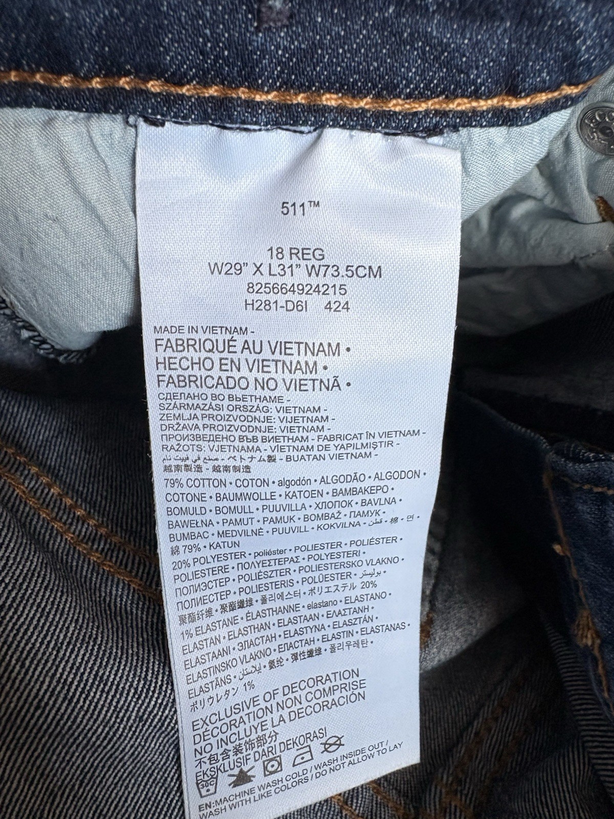 как выглядит NWT Levis Boys 511 Slim Fit Performance Jeans Size 18 Regular 29x31 Medium Wash фото