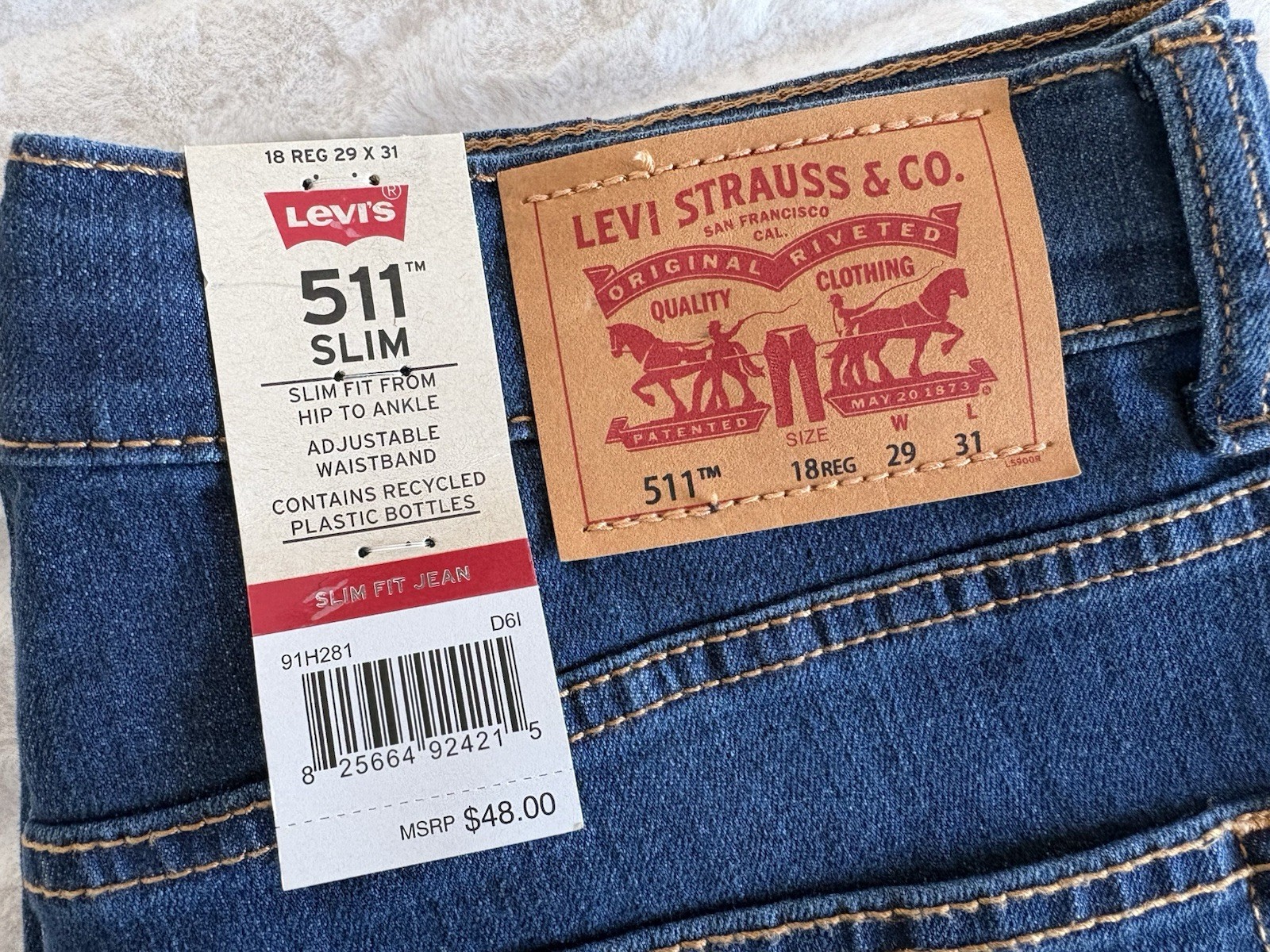 NWT Levi's Boys 511 Slim Fit Performance Jeans Size 18 Regular 29x31 Medium Wash