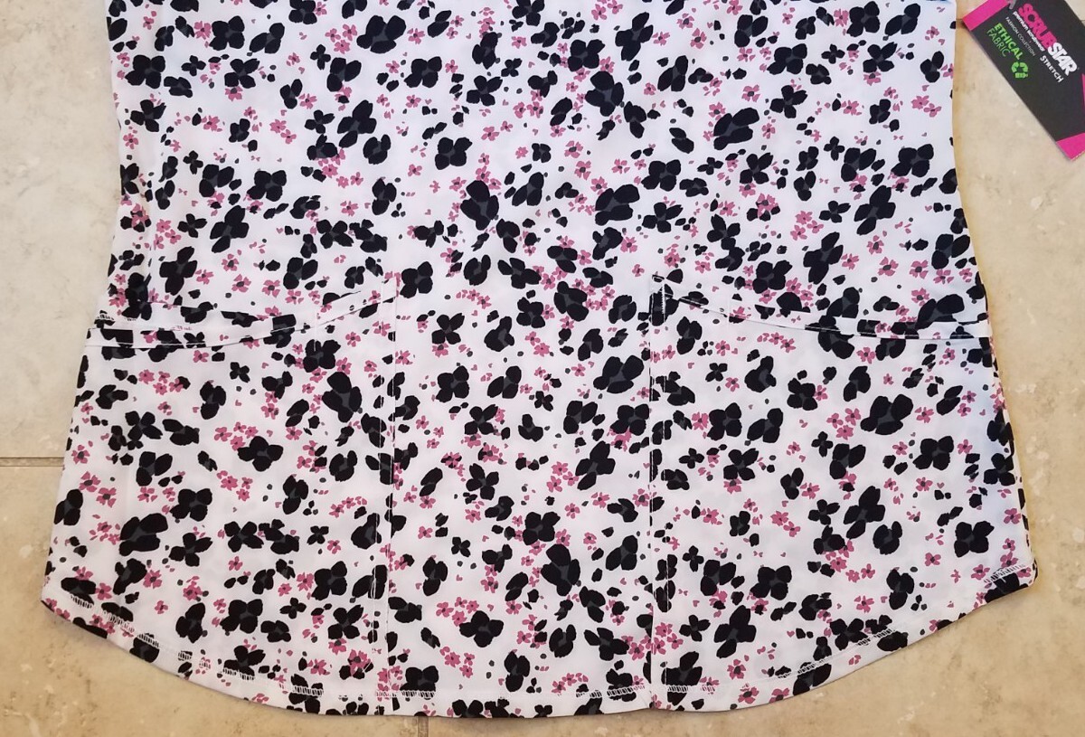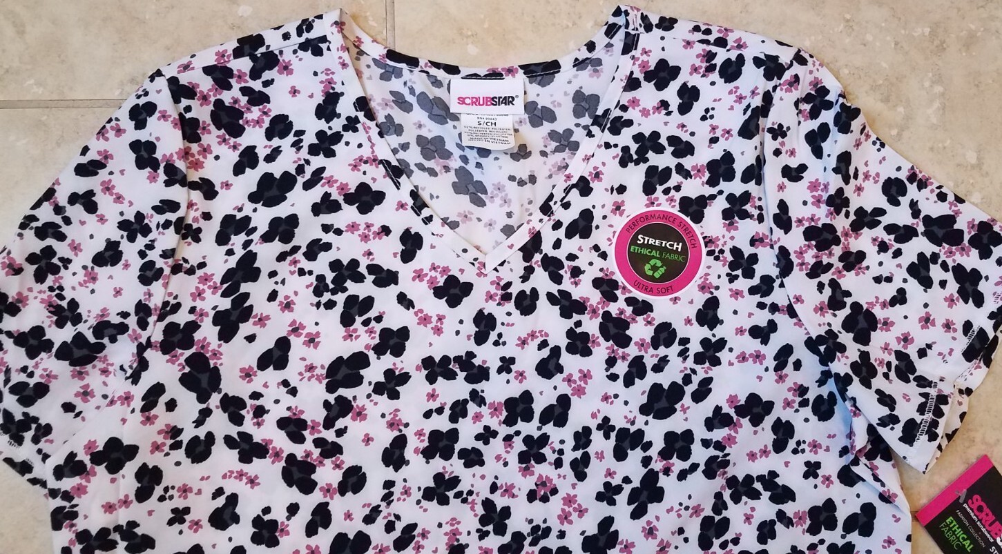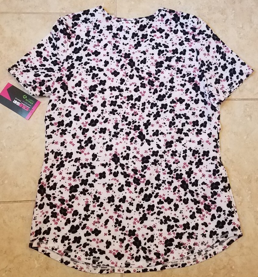 Scrubstar Women V-neck Scrub Top Cheetah Flowers Stretch Sz Small NEW