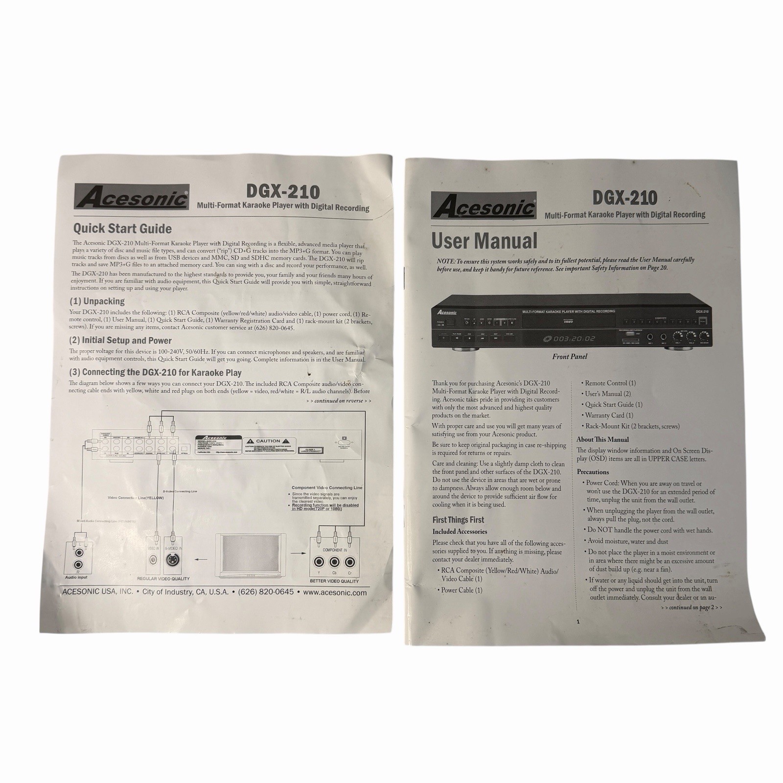 Acesonic DGX-210 Multi-Format Karaoke/DVD Player Recorder CDG MP3 Remote Manual
