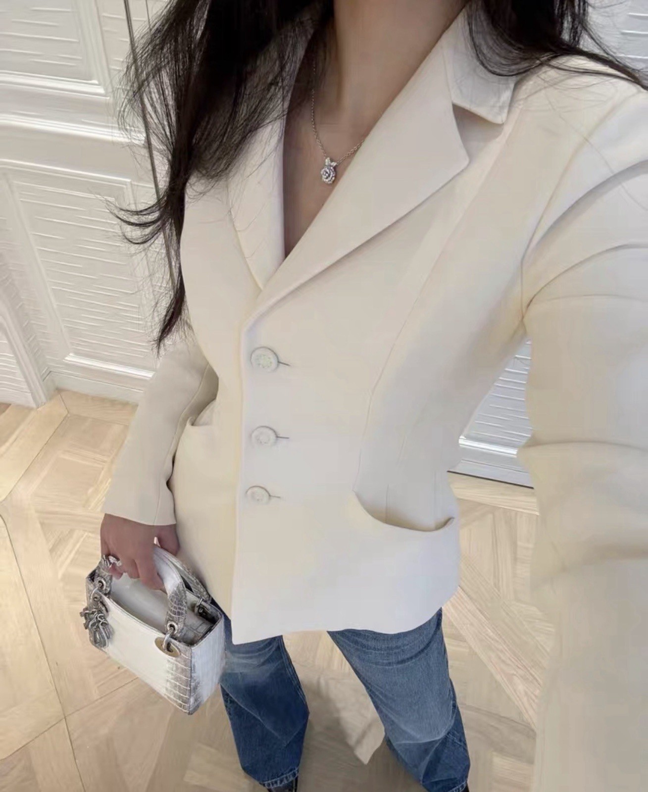 как выглядит RARE Christian Dior 30 Montaigne Bar Jacket White Cotton Silk Blazer FR36 S фото
