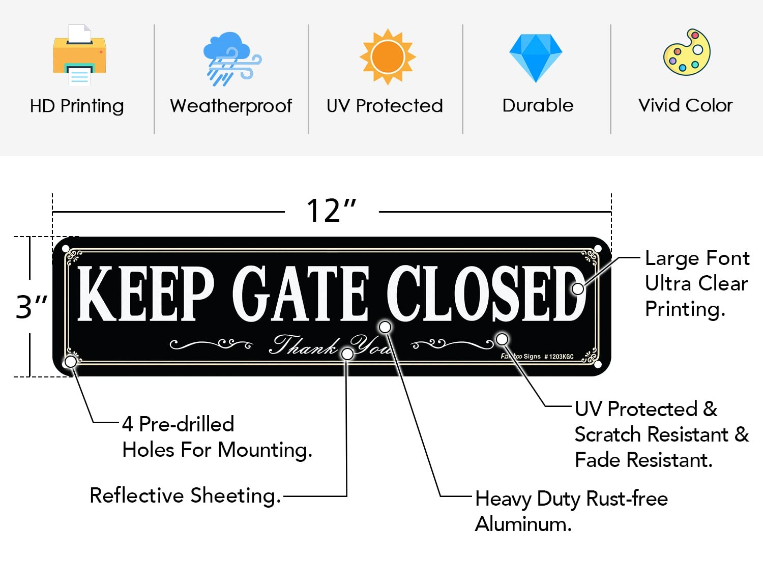 Faittoo Keep Gate Closed Sign, 12x3 inches, Black - 12 x 3 Inches - 4 Pack