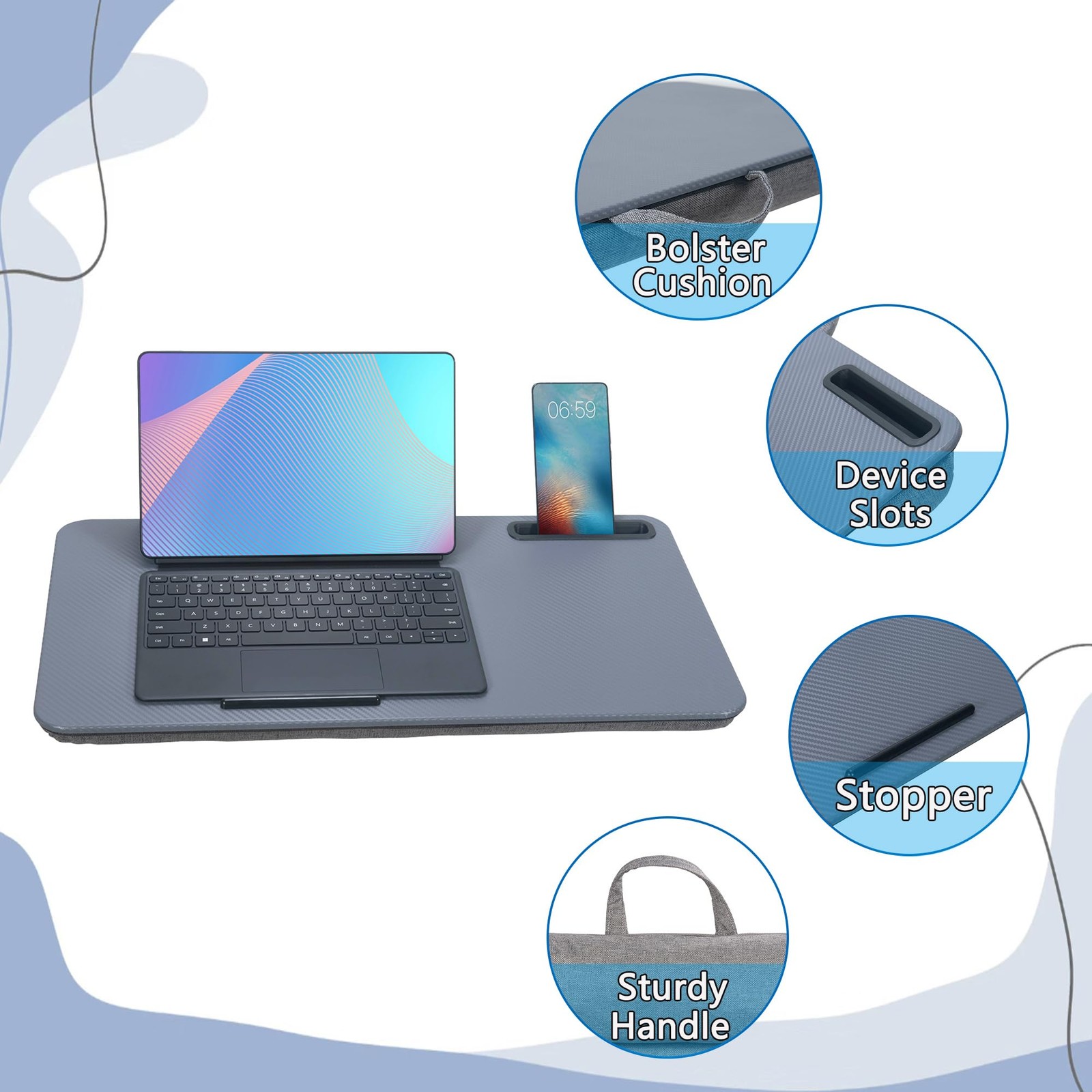 как выглядит Portable Laptop Desk Fits 16 Inch Tablet Slot Built-in Cushion Dark Grey фото