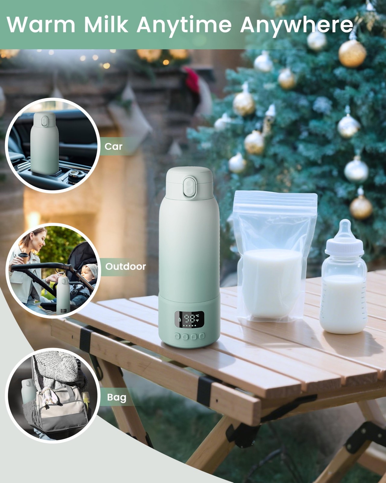 Portable Bottle Warmer Extended Battery Life - Dual Heating Modes for Breast ...