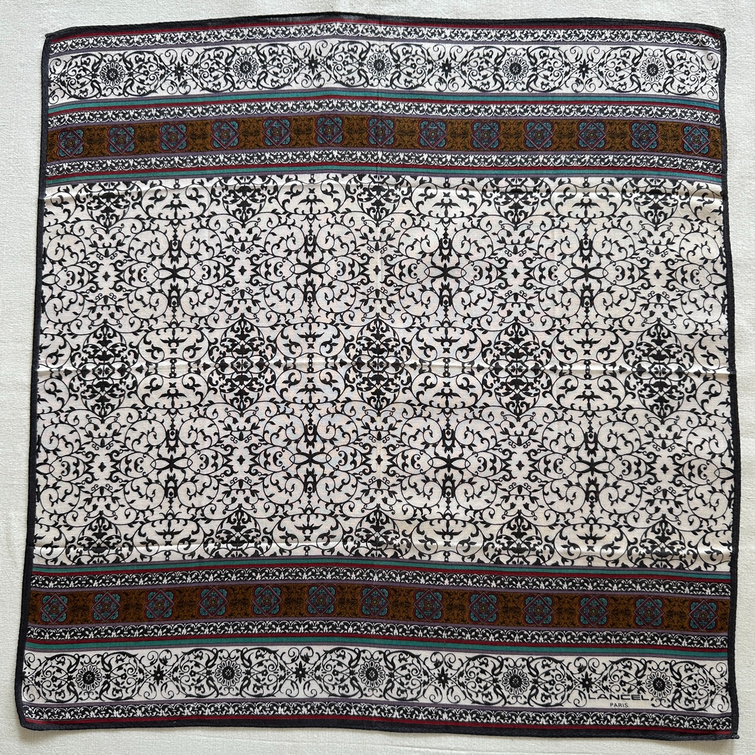 Vintage Handkerchief Cotton line Art Oriental Floral Ornament Pocket Square 18
