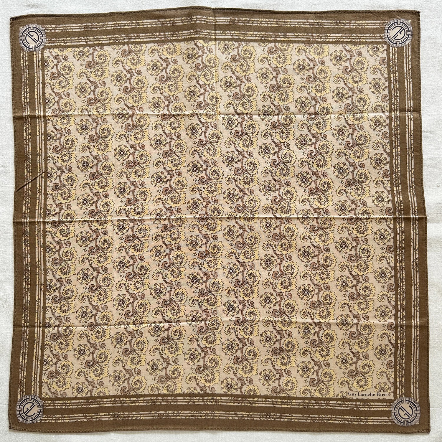 VTG Handkerchief Brown Cotton Floral Flourish Pattern Classic Pocket Square 18