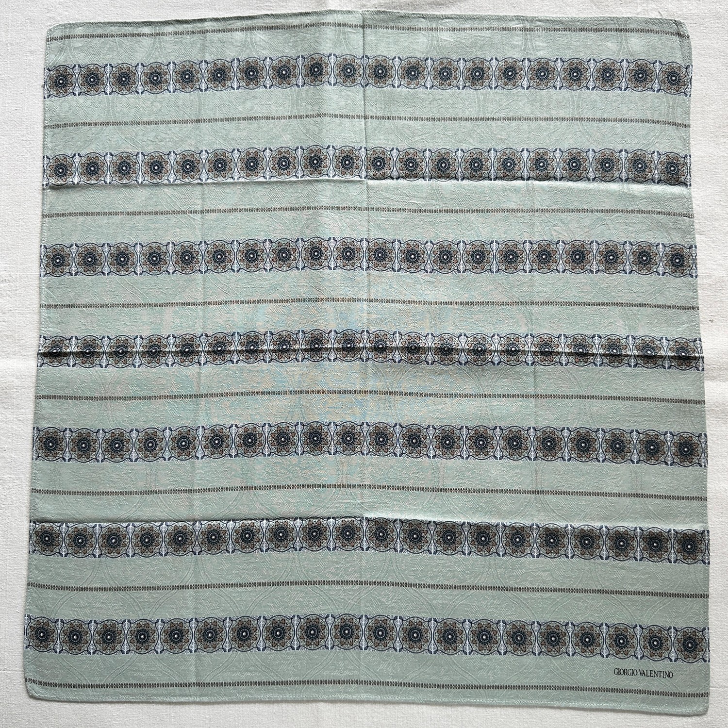 VTG Handkerchief light Green Fabric Woven Ogee Damask Pattern Pocket Square 18