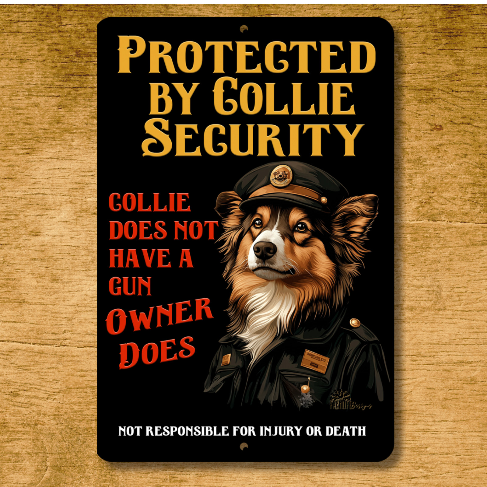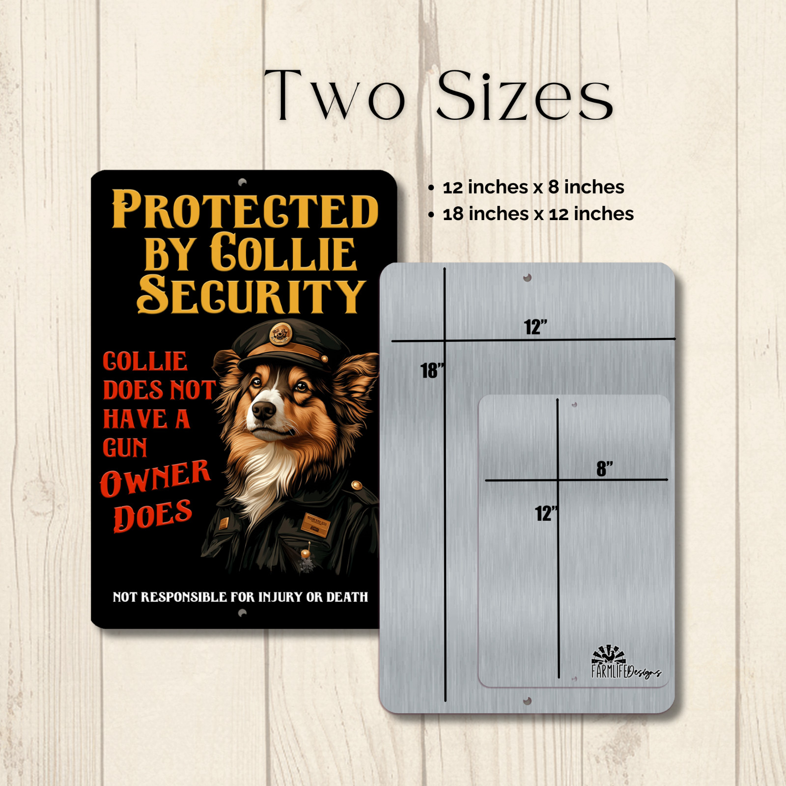 Collie Security Sign protected by dog metal handmade outdoor yard art tin gift